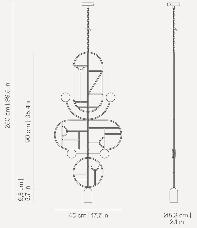 Pendelleuchte WOODEN DOTS WDS15 messingfarben mit Blau- und Weißtönen