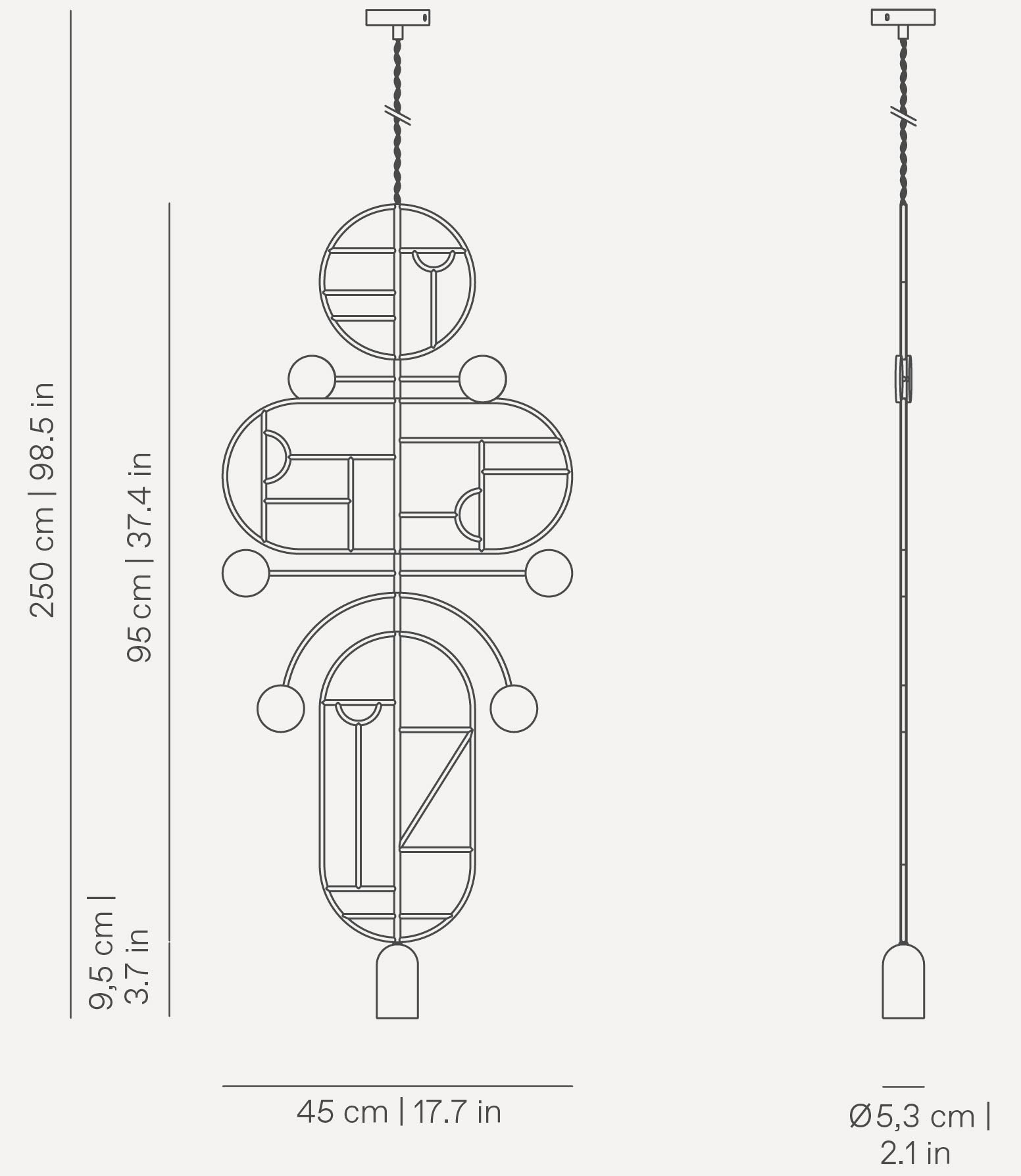 Außergewöhnliche Hängelampe strahlt warmes Licht mit 2700K aus und schafft eine gemütliche und stimmungsvolle Atmosphäre. Diese Lampe eignet sich hervorragend als zentrales Element in repräsentativen privaten und gewerblichen Innenräumen. Es handelt sich um eine einzigartige Hängelampe, die Funktionalität mit künstlerischer Form verbindet.