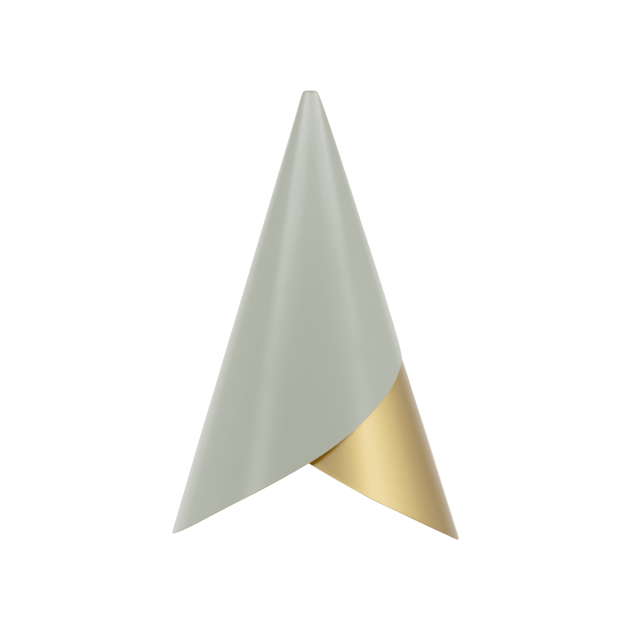 Kornett zu außergewöhnlich Schatten, was Einfachheit und Funktionalität kombiniert und die Essenz der skandinavischen Eleganz verleiht. Es besteht aus zwei subtil geformten Metallkegeln, die an Stellen gedreht und umgewandelt werden können, wodurch Sie Licht und Erscheinungsbild für Ihre Vorlieben erzeugen können.