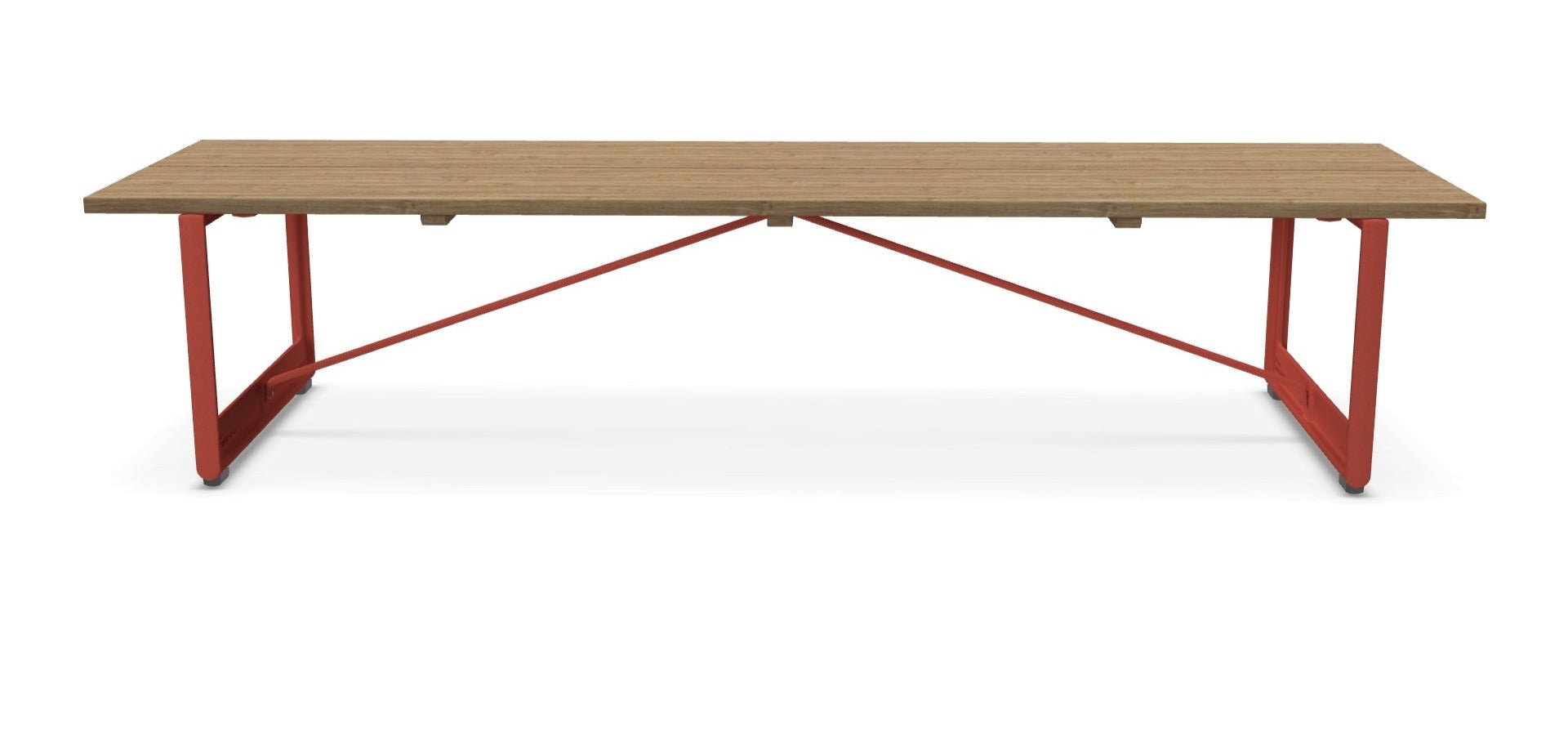 BRUT Bank aus Eichenholz mit rotem Fuß