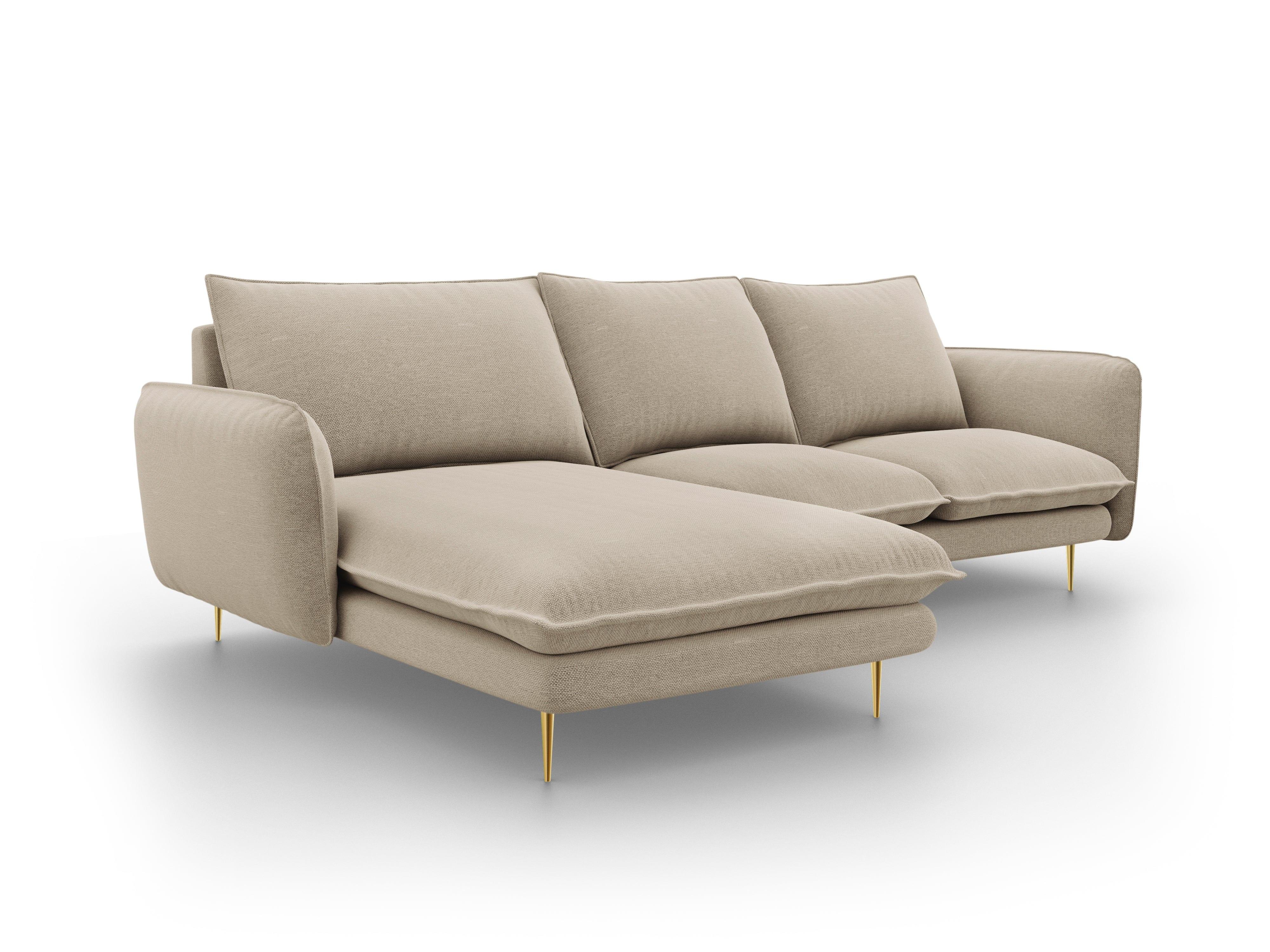 Links -Hand -Ecke Wiener Beige mit einer goldenen Basis