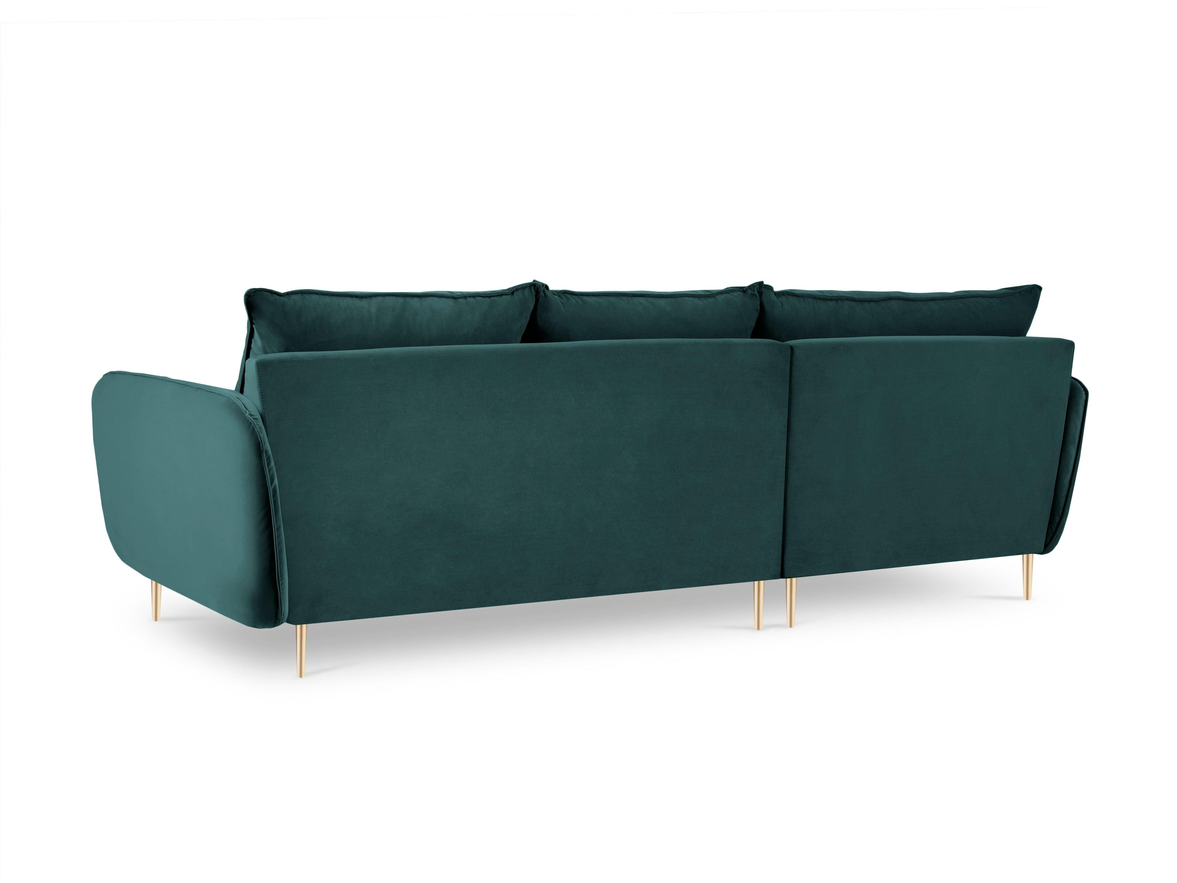 Wysokiej jakości tkanina aksamitna charakteryzuje się nie tylko modnym kolorem, ale też dużą wytrzymałością na ścieranie. Sprężyny zig-zag w siedzisku i konstrukcja z litego drewna sosnowego są gwarancją solidności. Narożnik będzie również idealnym uzupełnieniem pozostałych mebli z tej kolekcji Vienna, które zagwarantują idealny wypoczynek dla całej rodziny.