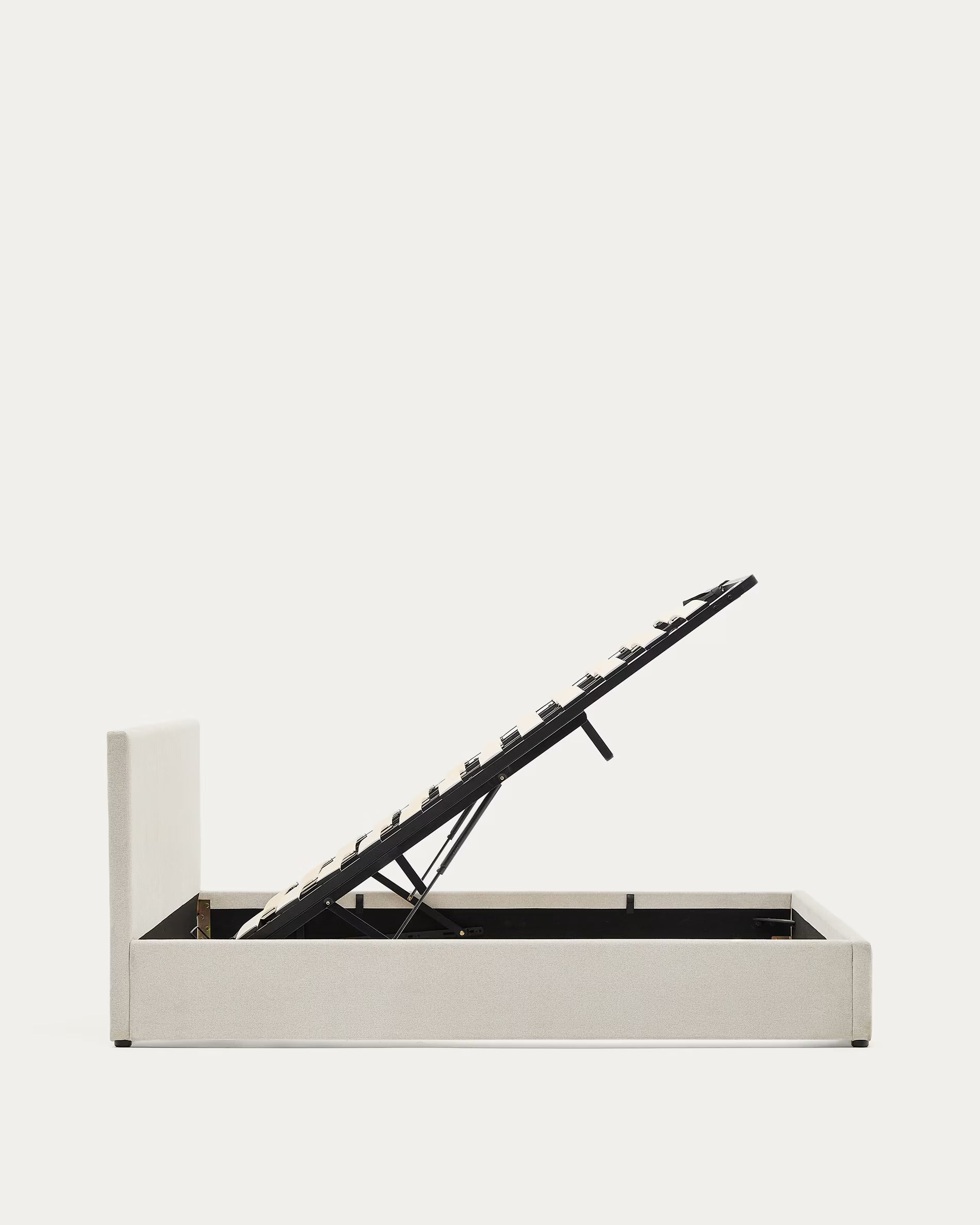 Dank des gasbetriebenen Kolbenmechanismus ist der Zugang zum Bettkasten bequem und problemlos, was eine einfache Aufbewahrung von zusätzlichen Textilien und Accessoires ermöglicht. Das Modell wurde mit Blick auf Stabilität und Langlebigkeit entworfen und ist mit Kunststoffschutzfüßen ausgestattet, die den Boden vor Kratzern schützen. Das macht dieses Modell zur perfekten Wahl für moderne und praktische Schlafzimmer.