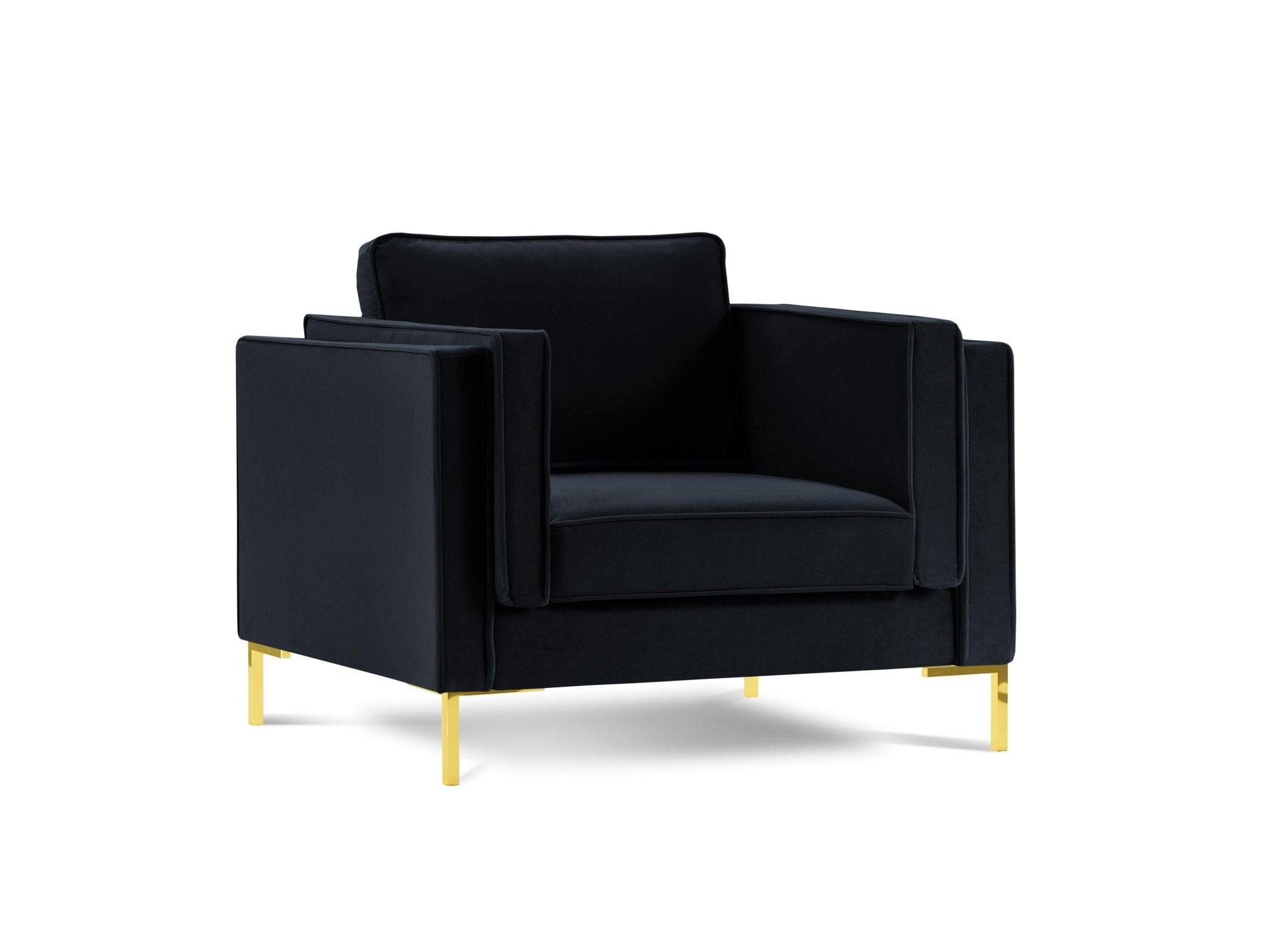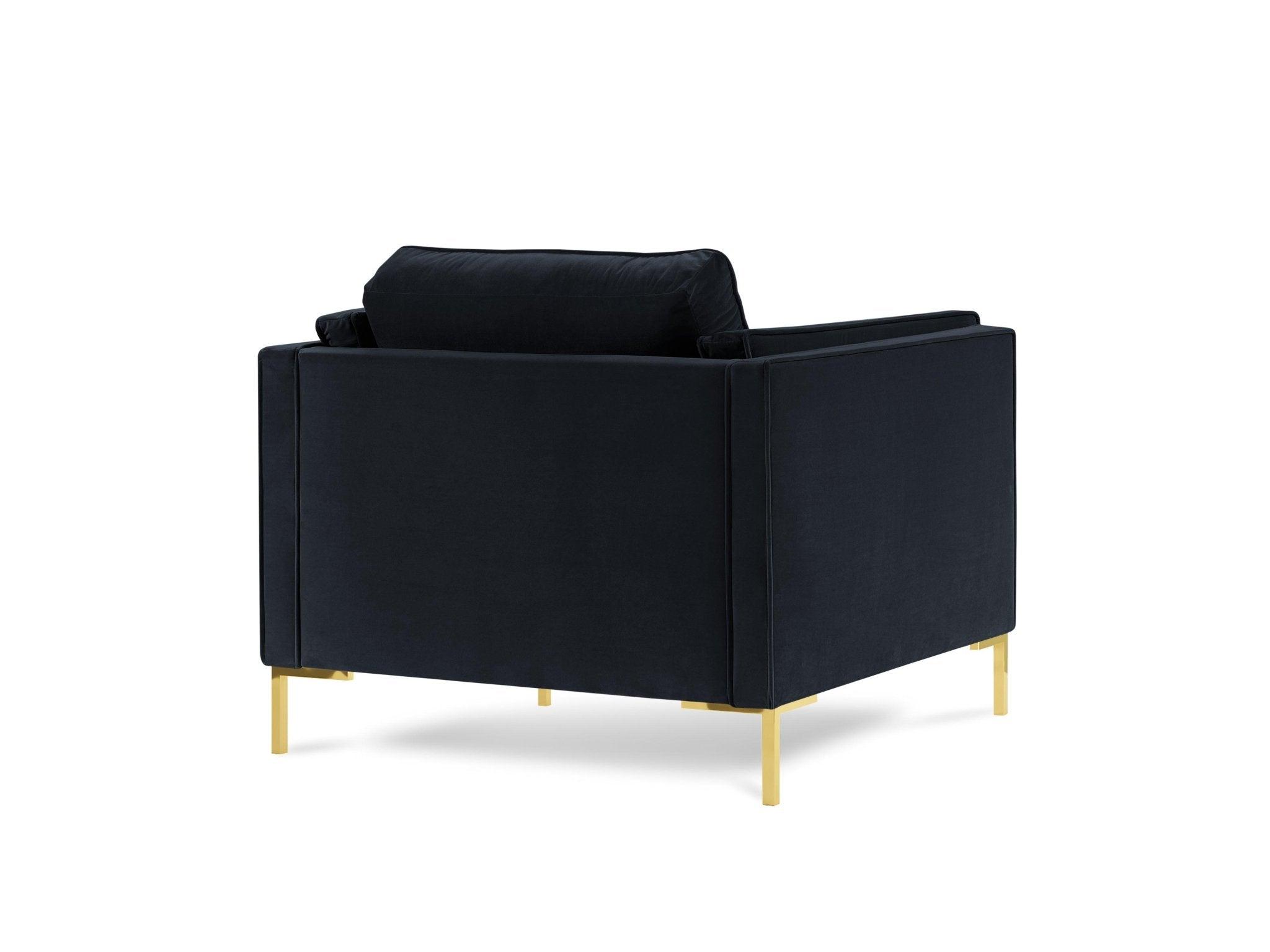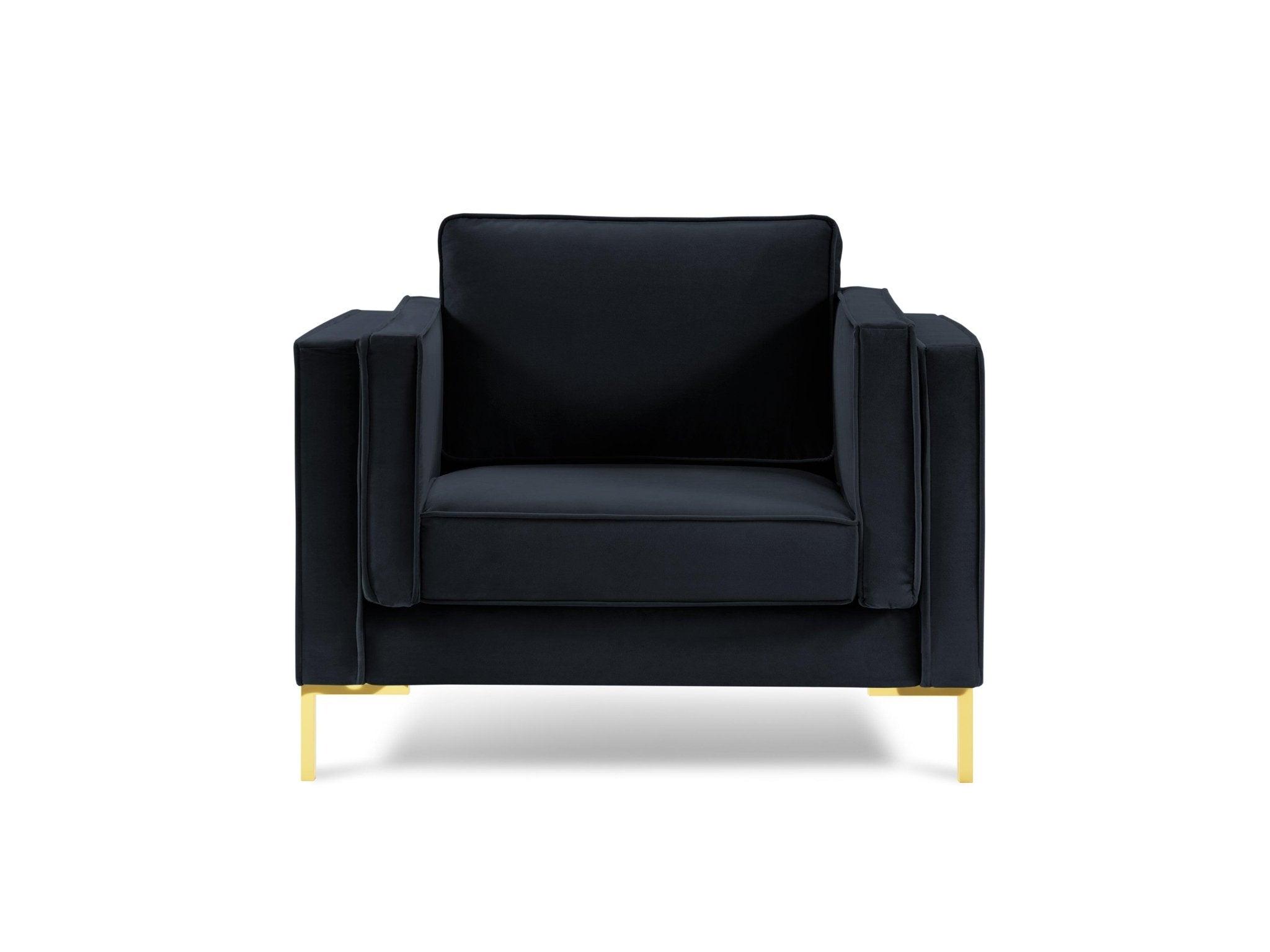 Fotel aksamitny LUIS ciemnoniebieski ze złotą podstawą Milo Casa    Eye on Design