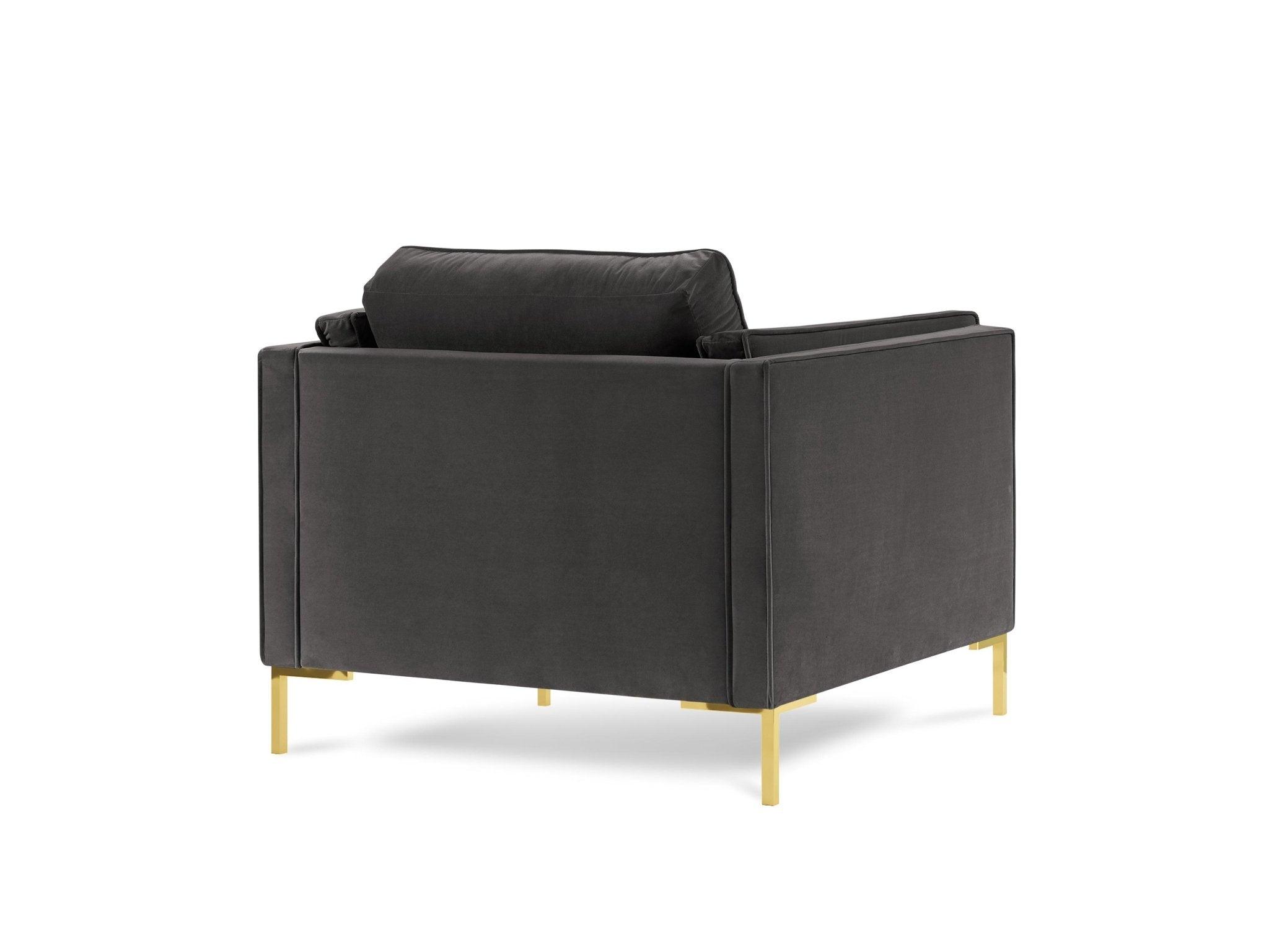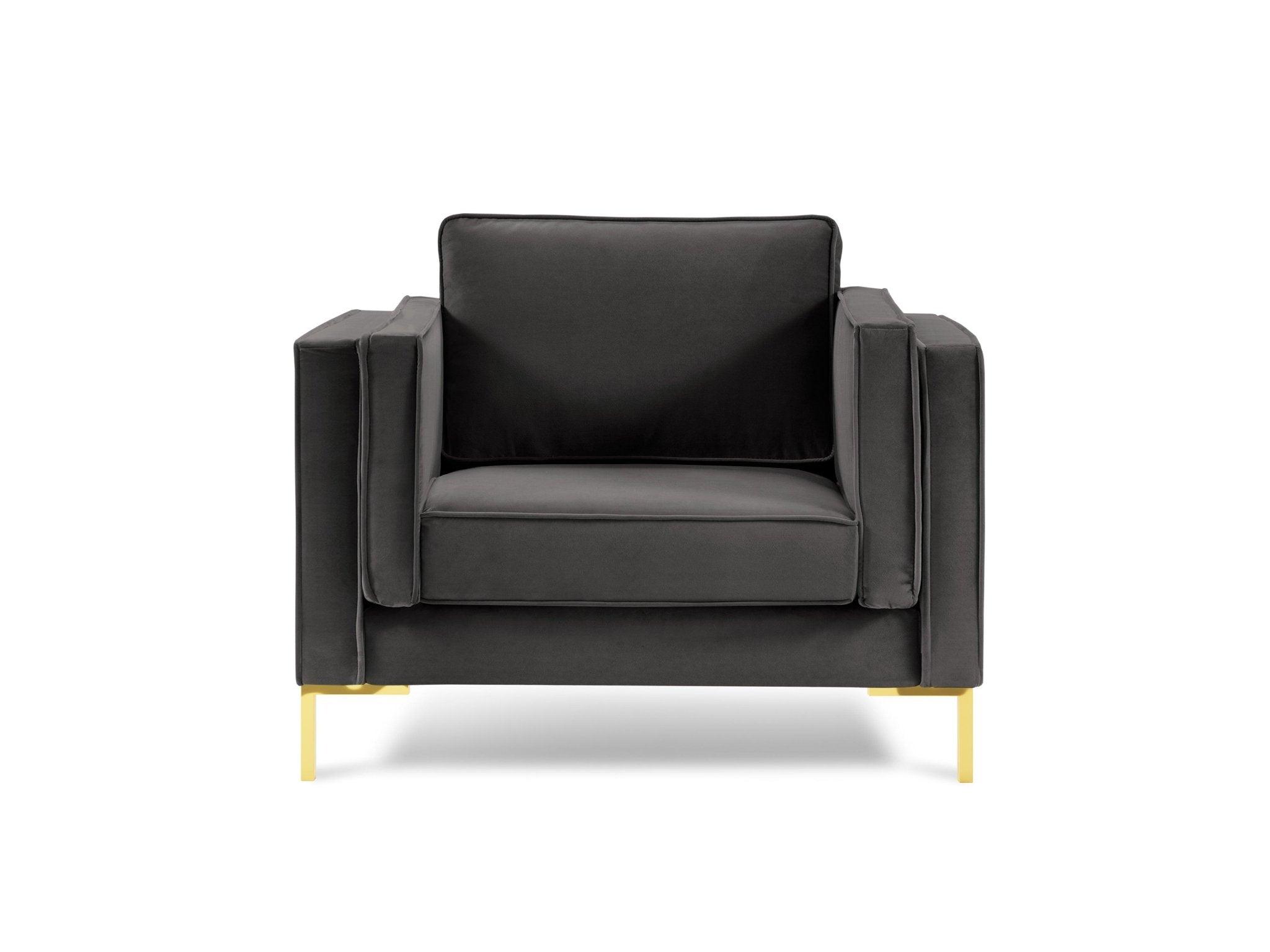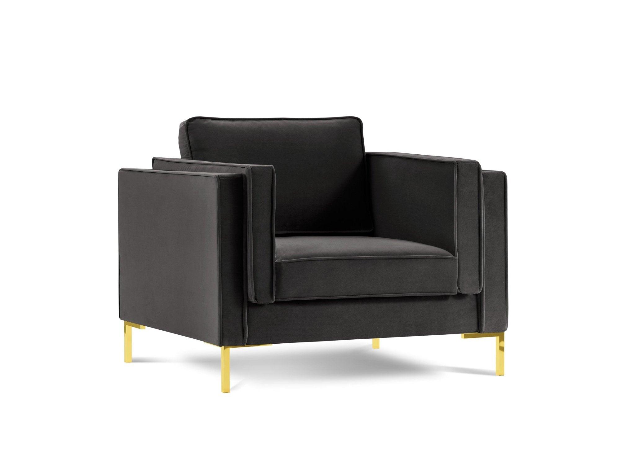 Fotel aksamitny LUIS ciemnoszary ze złotą podstawą Milo Casa    Eye on Design