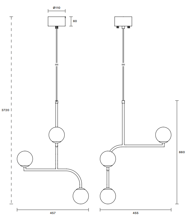 Die Pendelleuchte Mobil ist ein beeindruckendes Design, inspiriert von der Architektur New Yorks und der industriellen Ästhetik. Ihre Konstruktion erinnert an schwarze Metallgeländer von Balkonen sowie an die Laternen der Brooklyn Bridge. Mobil zeichnet sich durch eine asymmetrische Komposition von kugelförmigen Schirmen aus, die in einer grafischen, rhythmischen Struktur verbunden sind – ähnlich einer modernen Skulptur, die im Raum schwebt.