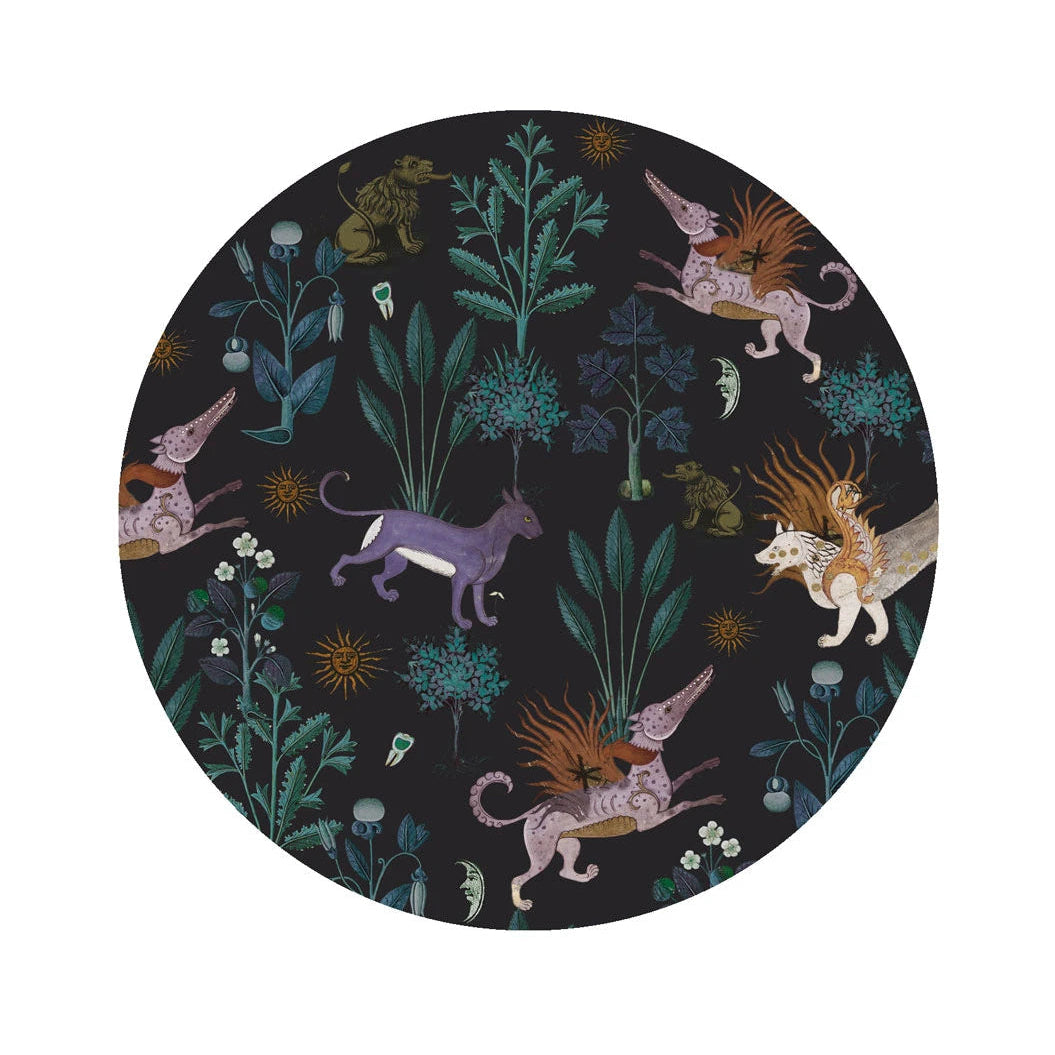 Wandbild in Kreisform DOTS - BOTANIC BEAST PURPLE schwarz mit lila