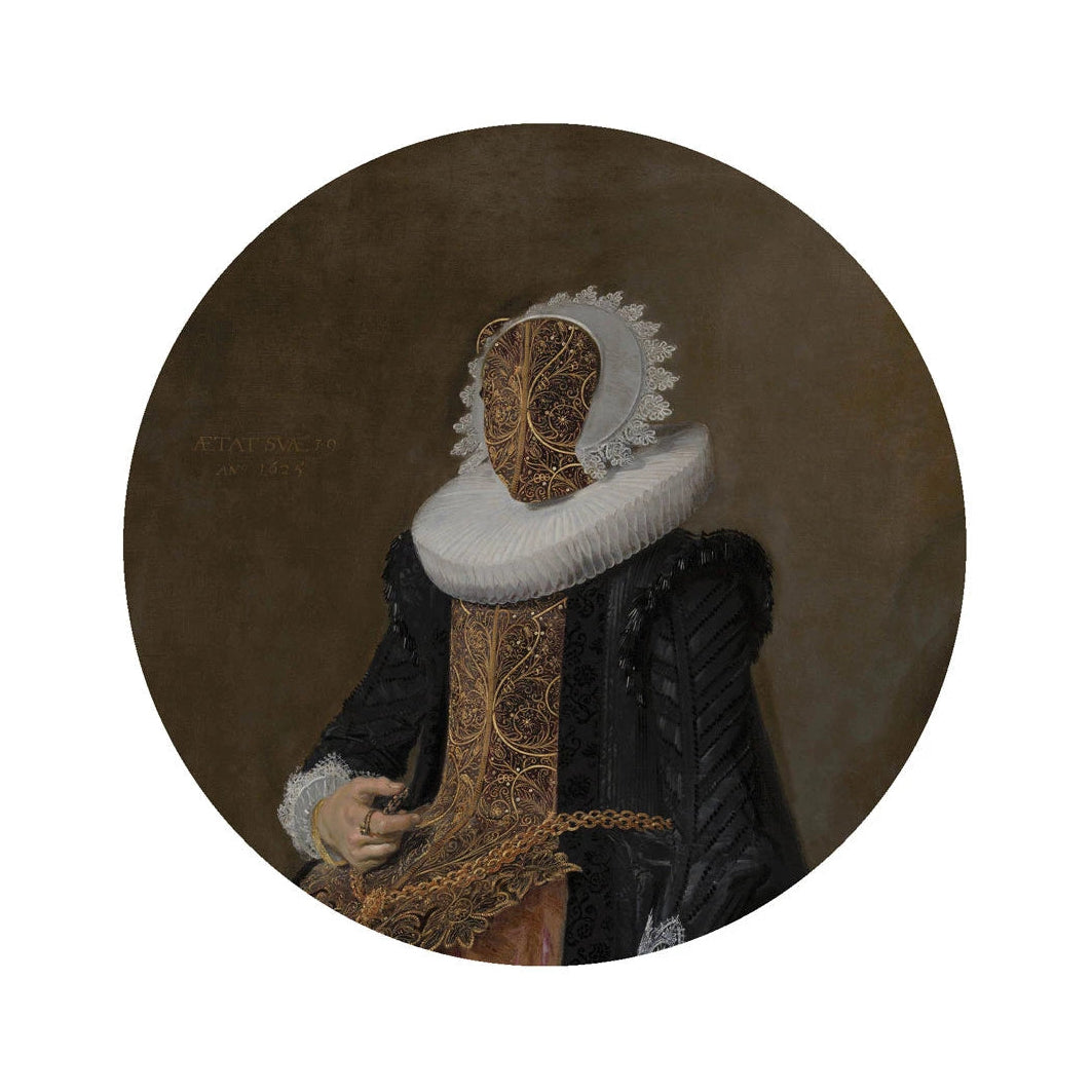 Wandbild in Kreisform DOTS - BAROQUE LADY brąnzig