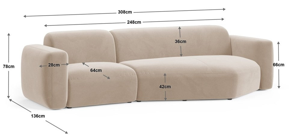 Ecksofa Strino ist die ideale Kombination aus Funktionalität und außergewöhnlichem Design. Die große Sitzfläche bietet Platz sowohl für die tägliche Entspannung als auch für die Aufnahme von Gästen. Die ergonomische Konstruktion mit breitem Chaiselongue ermöglicht es, sich bequem zu entspannen, während die massiven Armlehnen dem Möbelstück einen modernen, minimalistischen Charakter verleihen. Es ist die perfekte Wahl für Menschen, die Eleganz und Komfort in einem schätzen.
