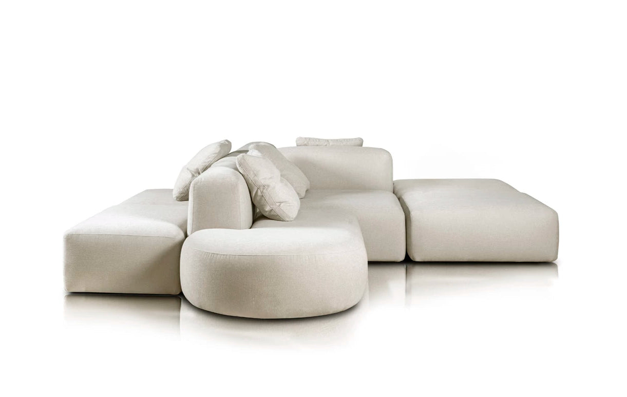 Die sanften Linien des Möbels erinnern an von Wasser geglättete Steine und schaffen ein Gleichgewicht zwischen Form und Funktionalität. Eckcouch eignet sich sowohl für moderne Räume als auch für gemütlichere Innenräume. Die modulare Konstruktion bietet enorme Konfigurationsmöglichkeiten, und die hohe Qualität der Materialien gewährleistet Langlebigkeit und Komfort über Jahre hinweg.