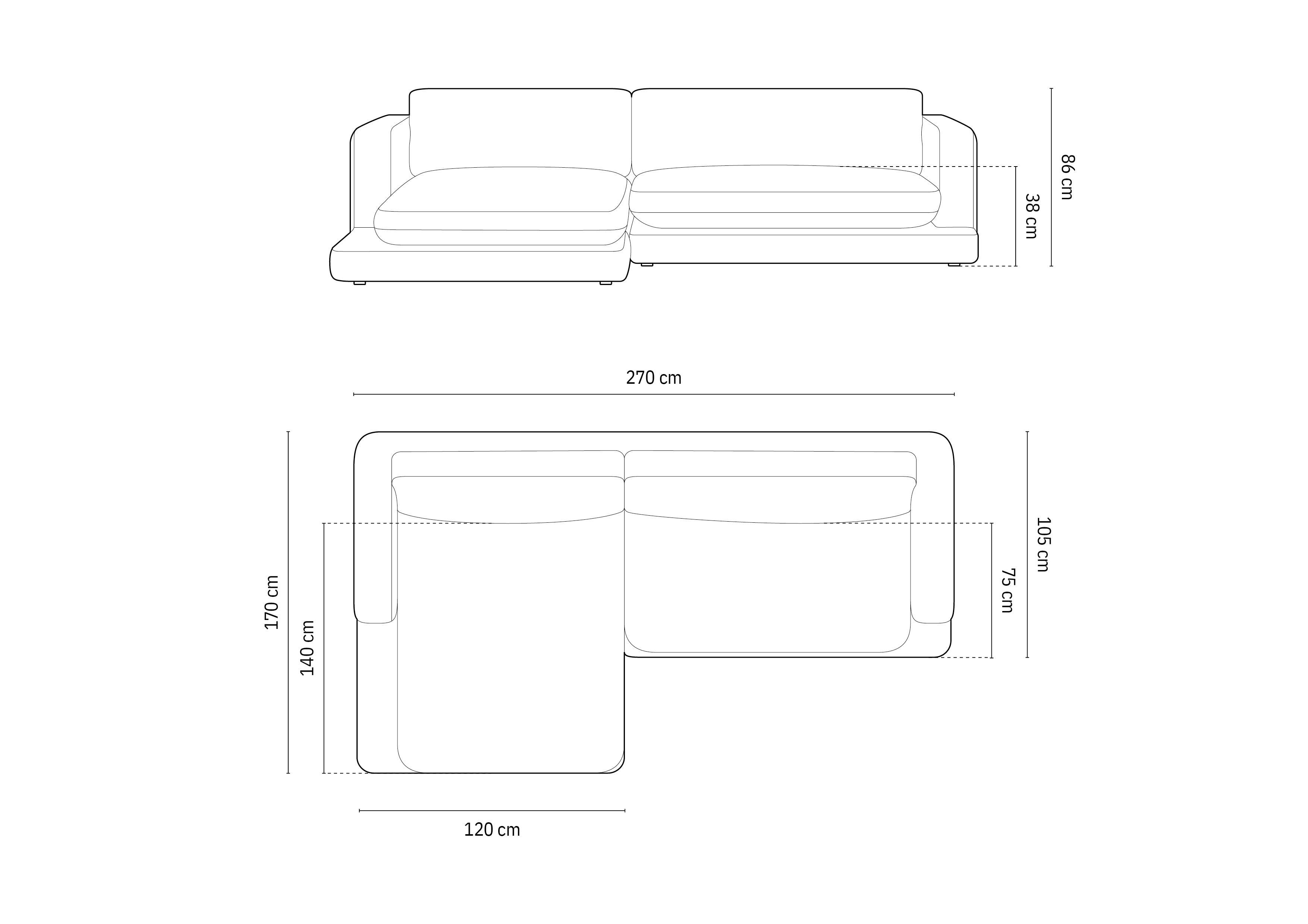 Linksseitige Eckcouch DAPHNE meergrün Chenille