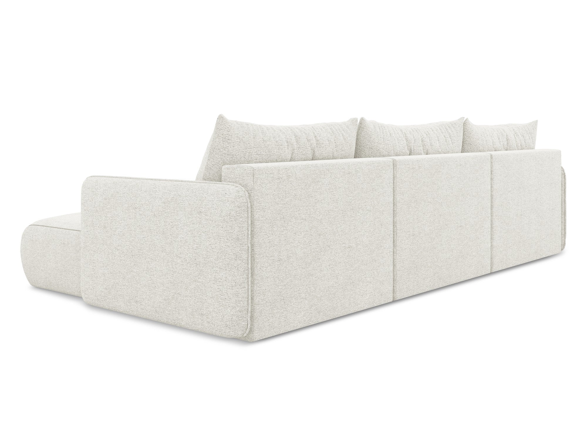 Außergewöhnlichen Komfort bieten die tiefen Sitzflächen und weichen Kissen, die den Körper umhüllen und vollständige Entspannung ermöglichen. Ein zusätzlicher Vorteil ist die Schlaf-Funktion, dank der sich das Winkelsofa mühelos in ein bequemes Bett verwandelt – ideal für Gäste oder zur täglichen Erholung. Die moderne Form in Kombination mit sanften Linien und einem gemütlichen Charakter macht Nanea zu einem Möbelstück, das Stil und Funktionalität vereint und eine Atmosphäre des täglichen Luxus in Ihrem Zuhause schafft.