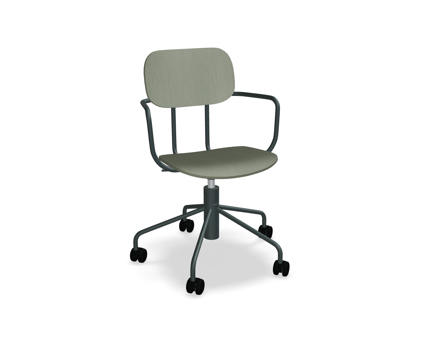 Krzesło NEW SCHOOL regulowana podstawa ciemny zielony [Milena] MDD ciemny zielony kółka do miękkie powierzchni bez podłokietników Eye on Design