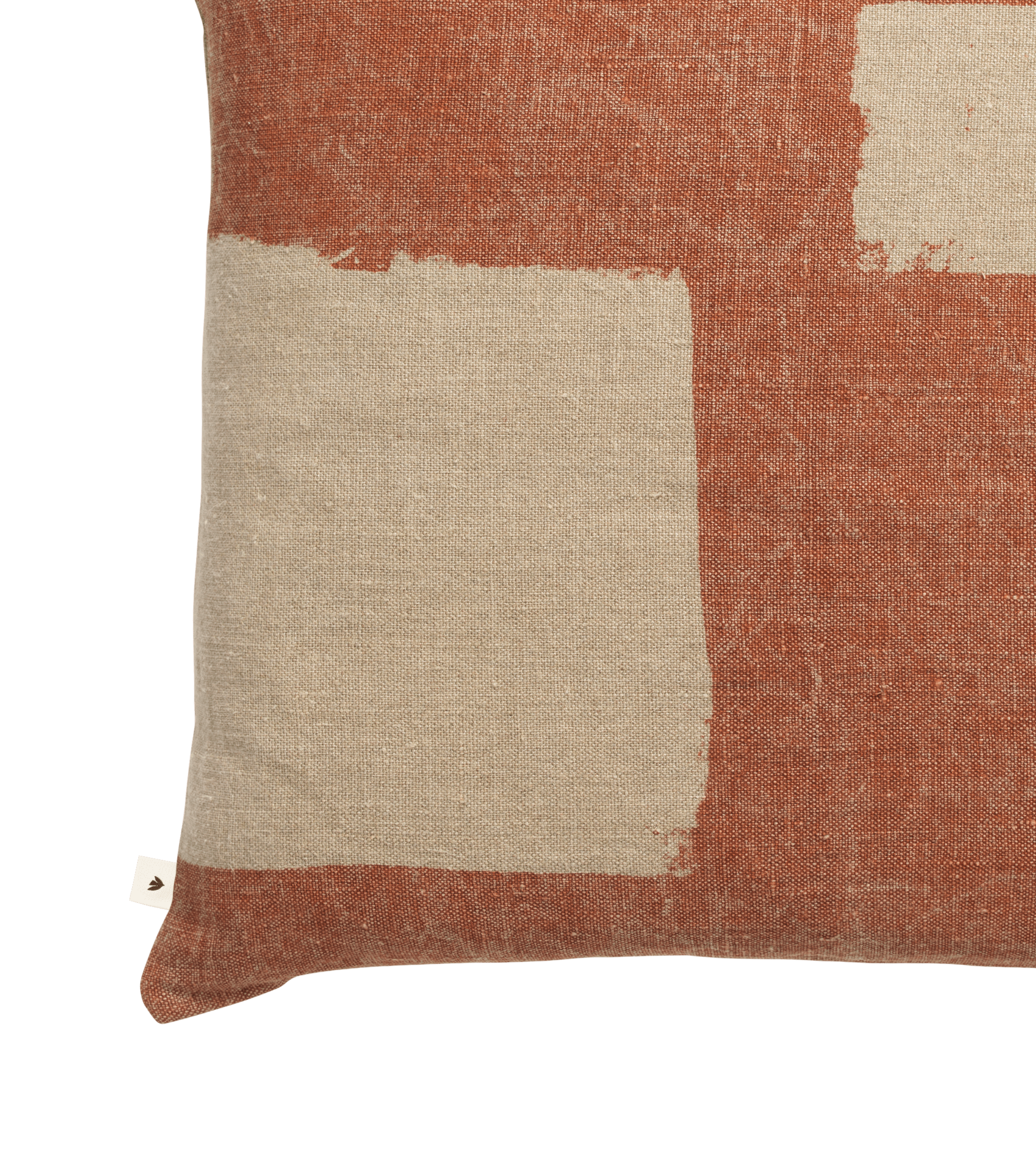 Dekokissen Oleo besteht aus 100% weichgemachtem Leinen und ist mit einem handgedruckten Muster im Siebdruckverfahren verziert. Die künstlerischen, handgezeichneten Linien verleihen ihm einen einzigartigen Charakter, während die präzise Verarbeitung das handwerkliche Können unterstreicht.