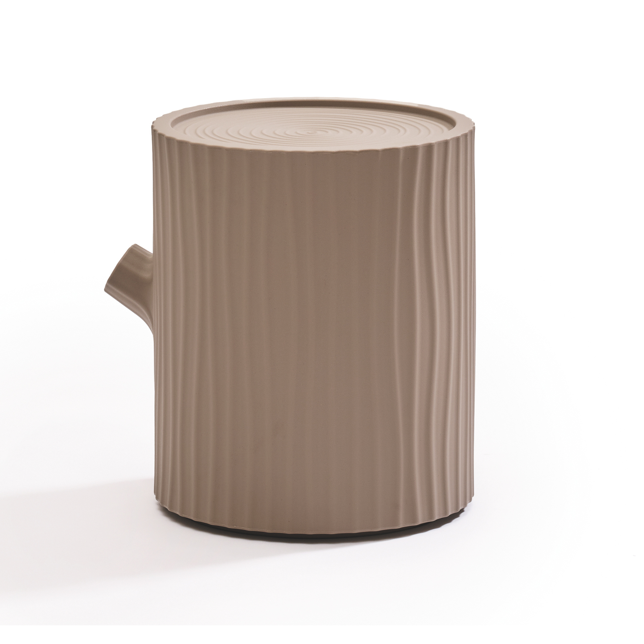 Tronco ist ein multifunktionaler Behälter, inspiriert von der Form eines Baumstamms. Hergestellt aus langlebigem, vollständig recycelbarem Polyethylen, vereint er die Funktion eines praktischen Aufbewahrungsorts mit einem originellen, dekorativen Design. Sie können darin die notwendigsten Gegenstände aufbewahren oder ihn als Beistelltisch nutzen, indem Sie Dinge auf seiner Oberfläche abstellen.