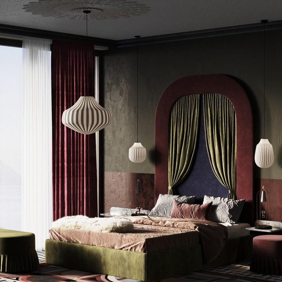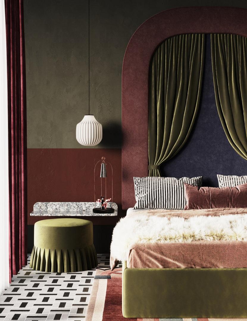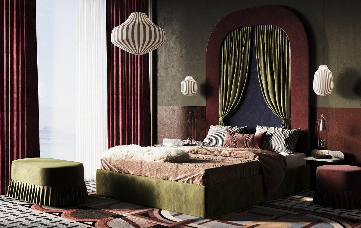 Łóżko tapicerowane ALICE róż z zieloną kurtyną Happy Barok    Eye on Design