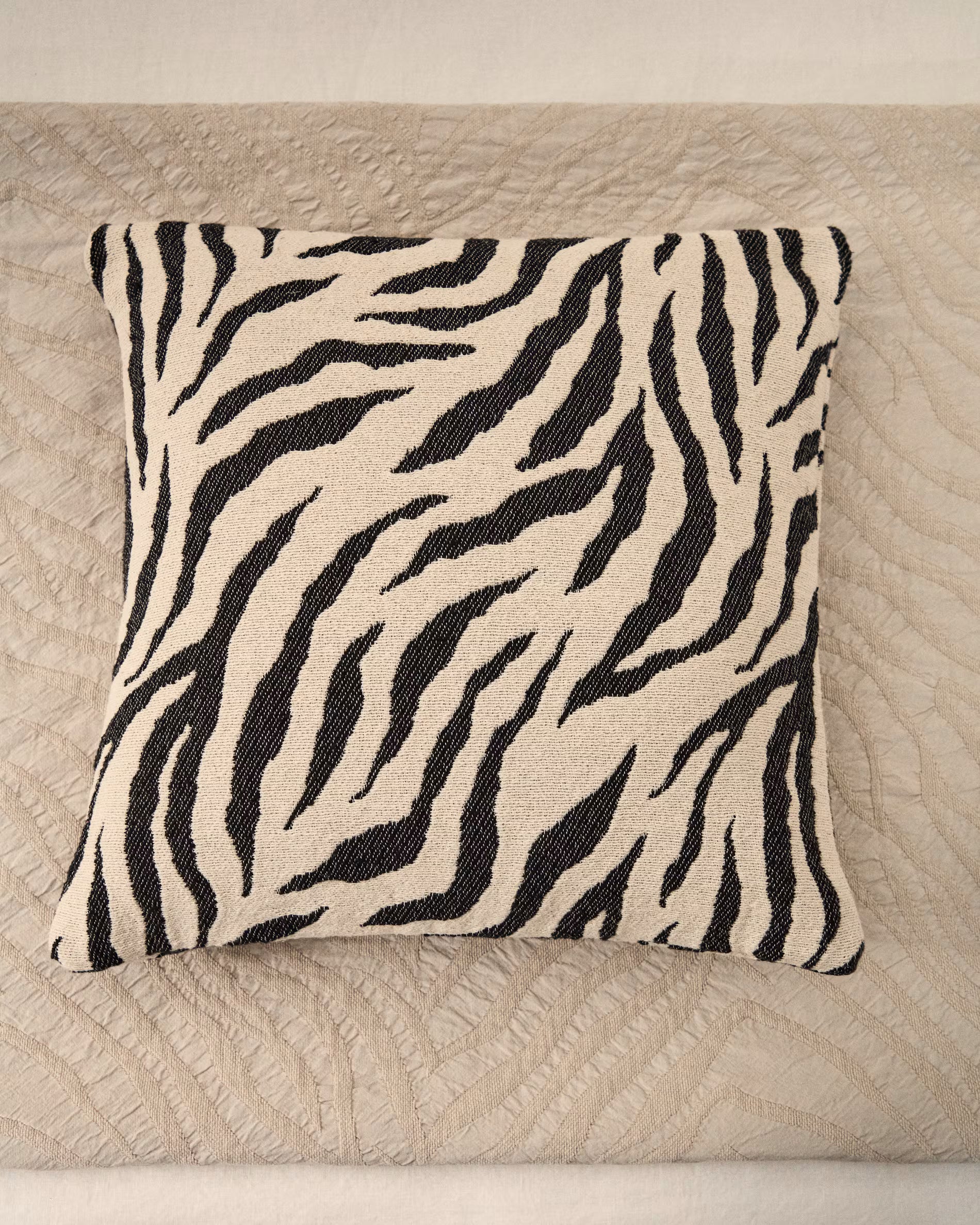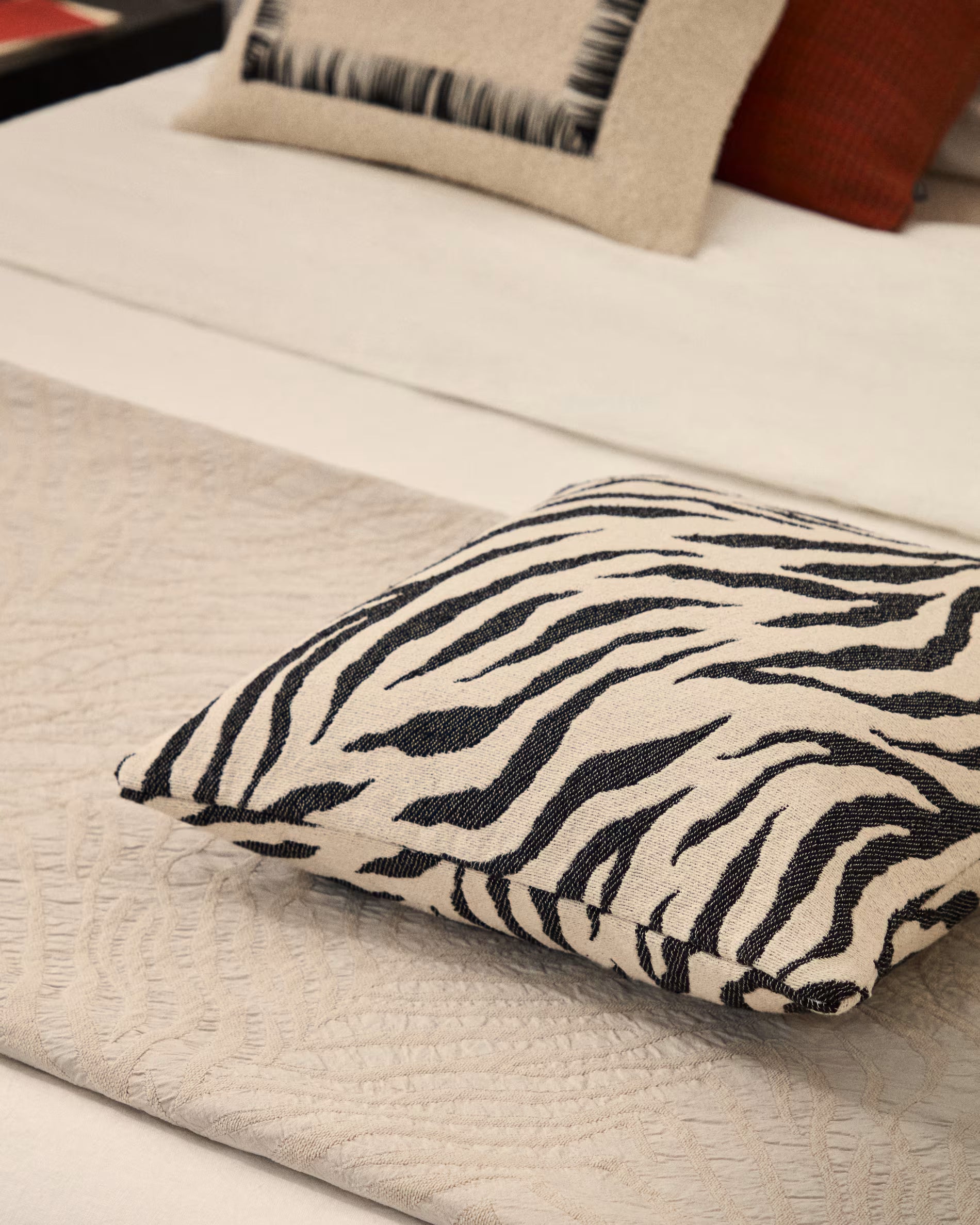 Handgewebtes Kissenbezug Meluni aus Baumwolljacquard ist die ideale Wahl für diejenigen, die nach originellen und stilvollen Accessoires suchen. Das von der Natur inspirierte Zebramuster verleiht ihm einen ausdrucksstarken Charakter, während die subtile Reliefstruktur des Stoffes dafür sorgt, dass das Gesamtbild elegant und modern wirkt. Dank 100% Baumwolle ist der Kissenbezug angenehm im Griff, langlebig und widerstandsfähig gegen den täglichen Gebrauch.