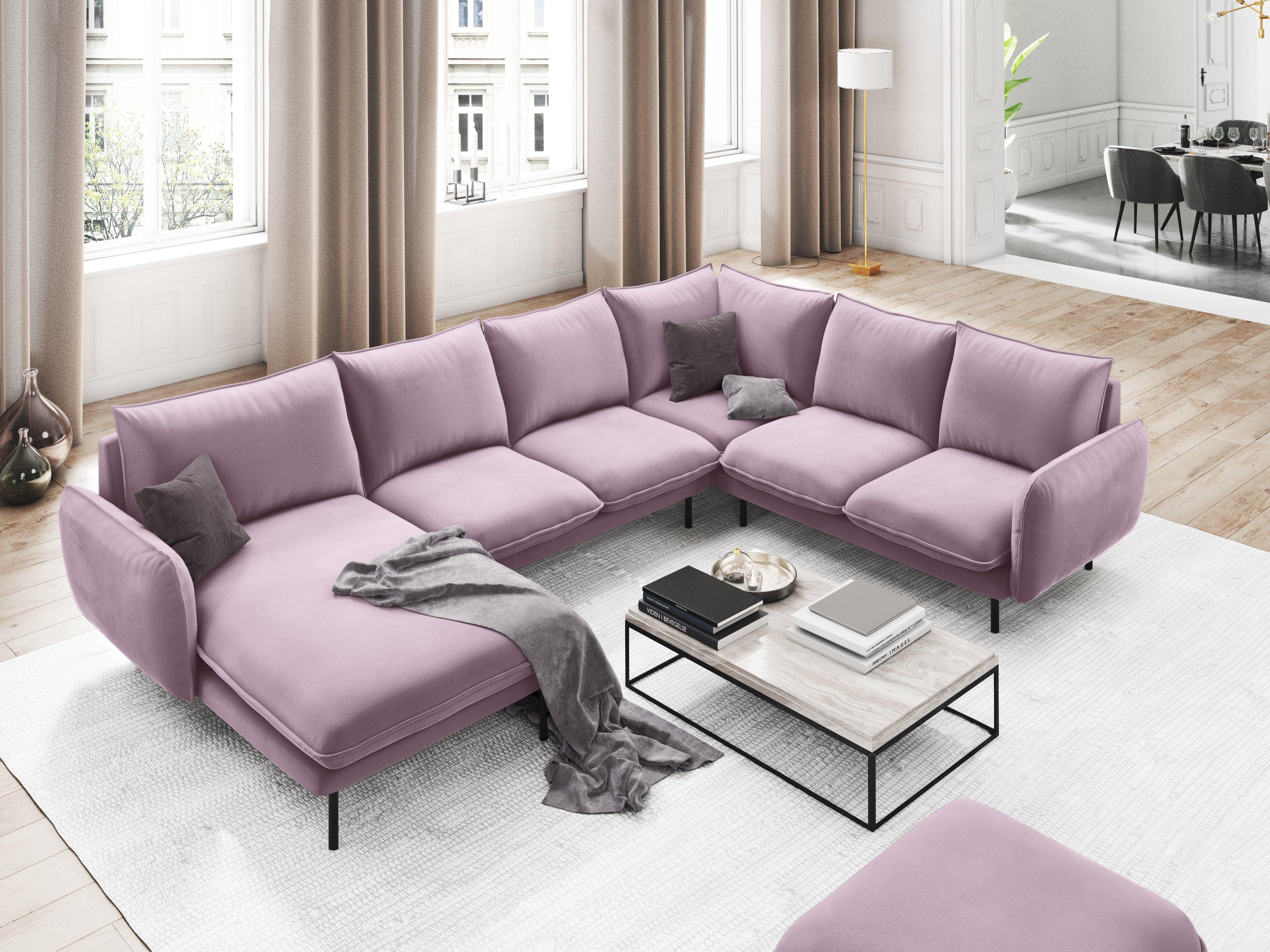 Rechte Ecke Samt Panorama Wien Pulver Pink mit einer schwarzen Basis