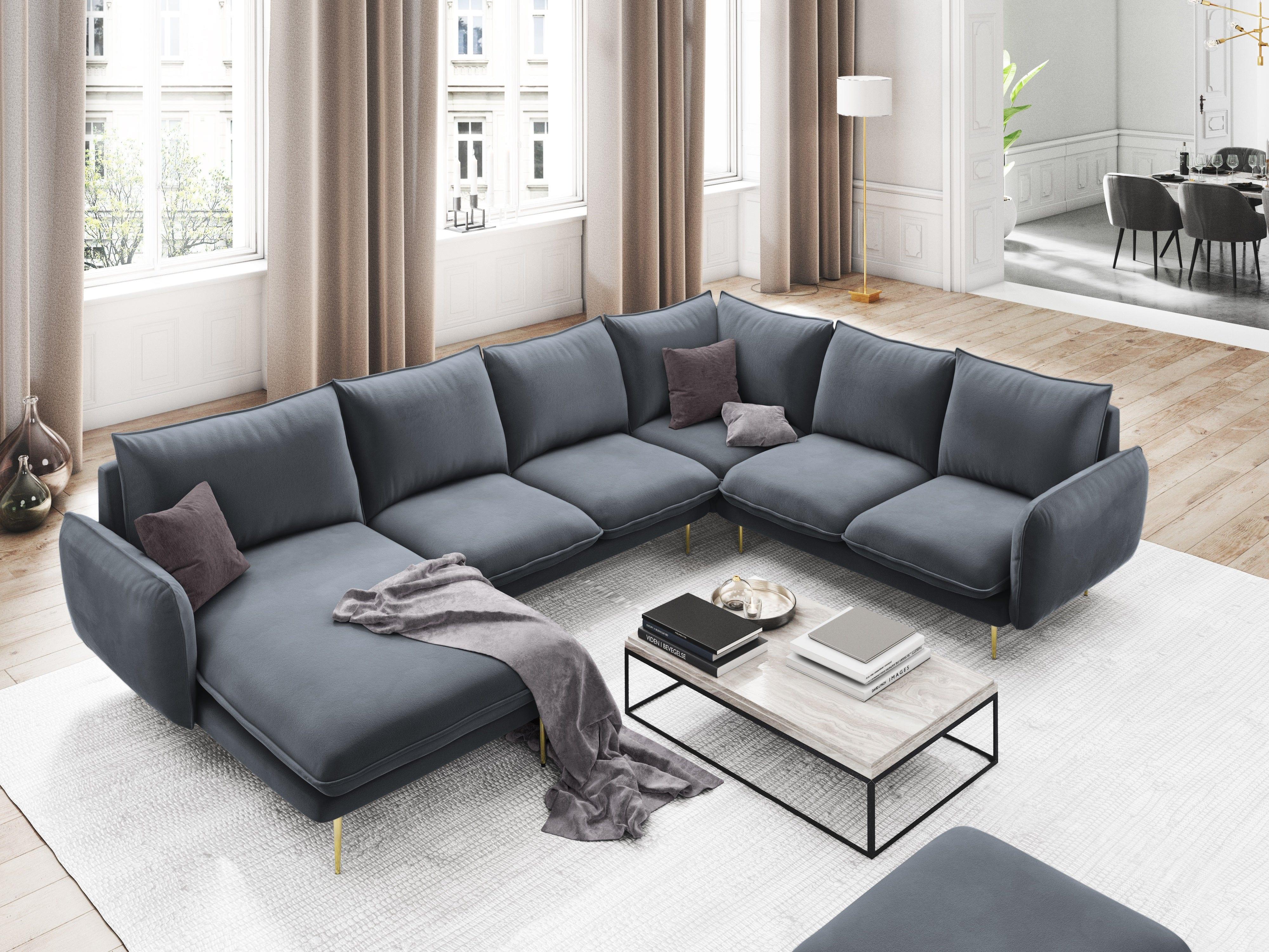Rechte Ecke Velvet Panoramic Wien Grey mit einer goldenen Basis