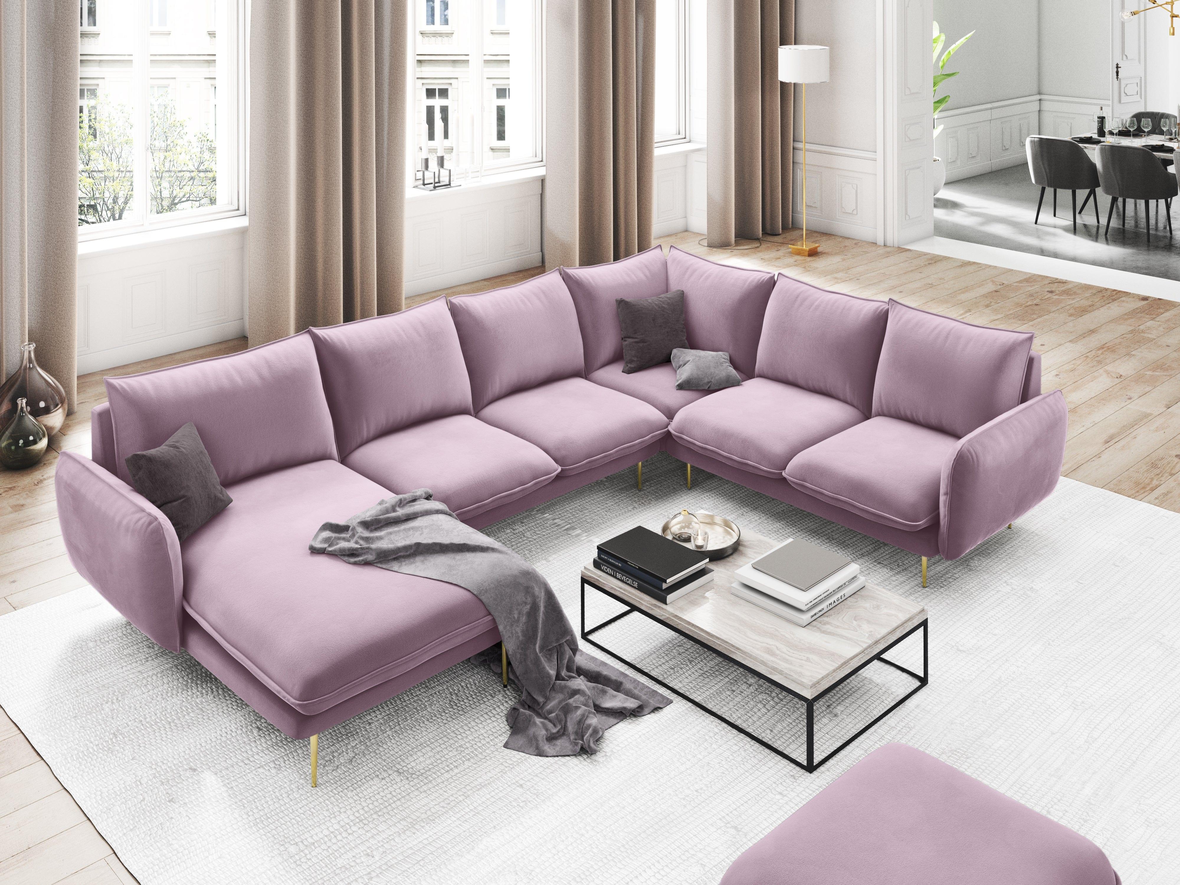 Rechte Ecke Velvet Panoramic Wien Pulver Pink mit einer goldenen Basis