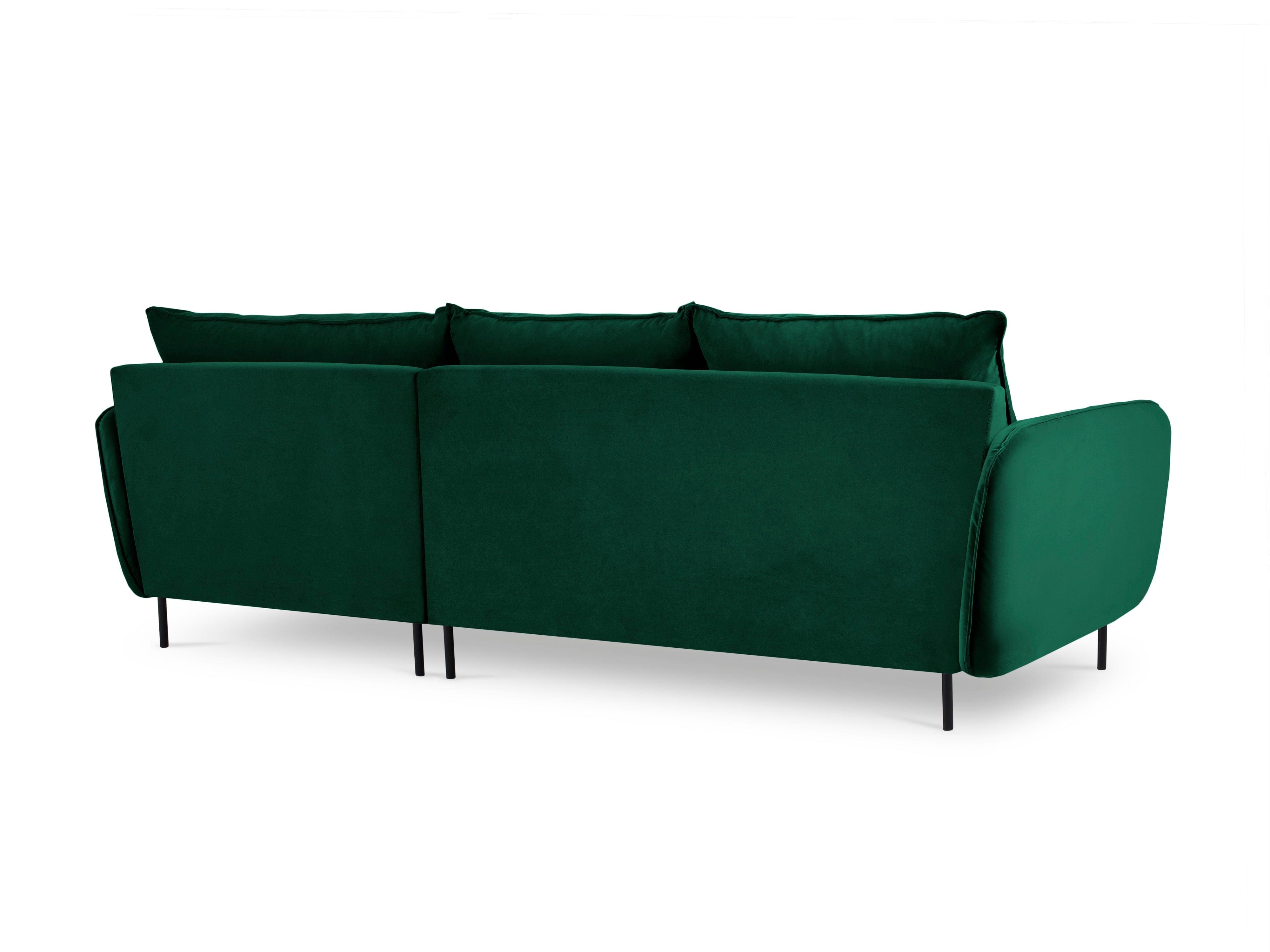 Wysokiej jakości tkanina aksamitna charakteryzuje się nie tylko modnym kolorem, ale też dużą wytrzymałością na ścieranie. Sprężyny zig-zag w siedzisku i konstrukcja z litego drewna sosnowego są gwarancją solidności. Narożnik będzie również idealnym uzupełnieniem pozostałych mebli z tej kolekcji Vienna, które zagwarantują idealny wypoczynek dla całej rodziny.