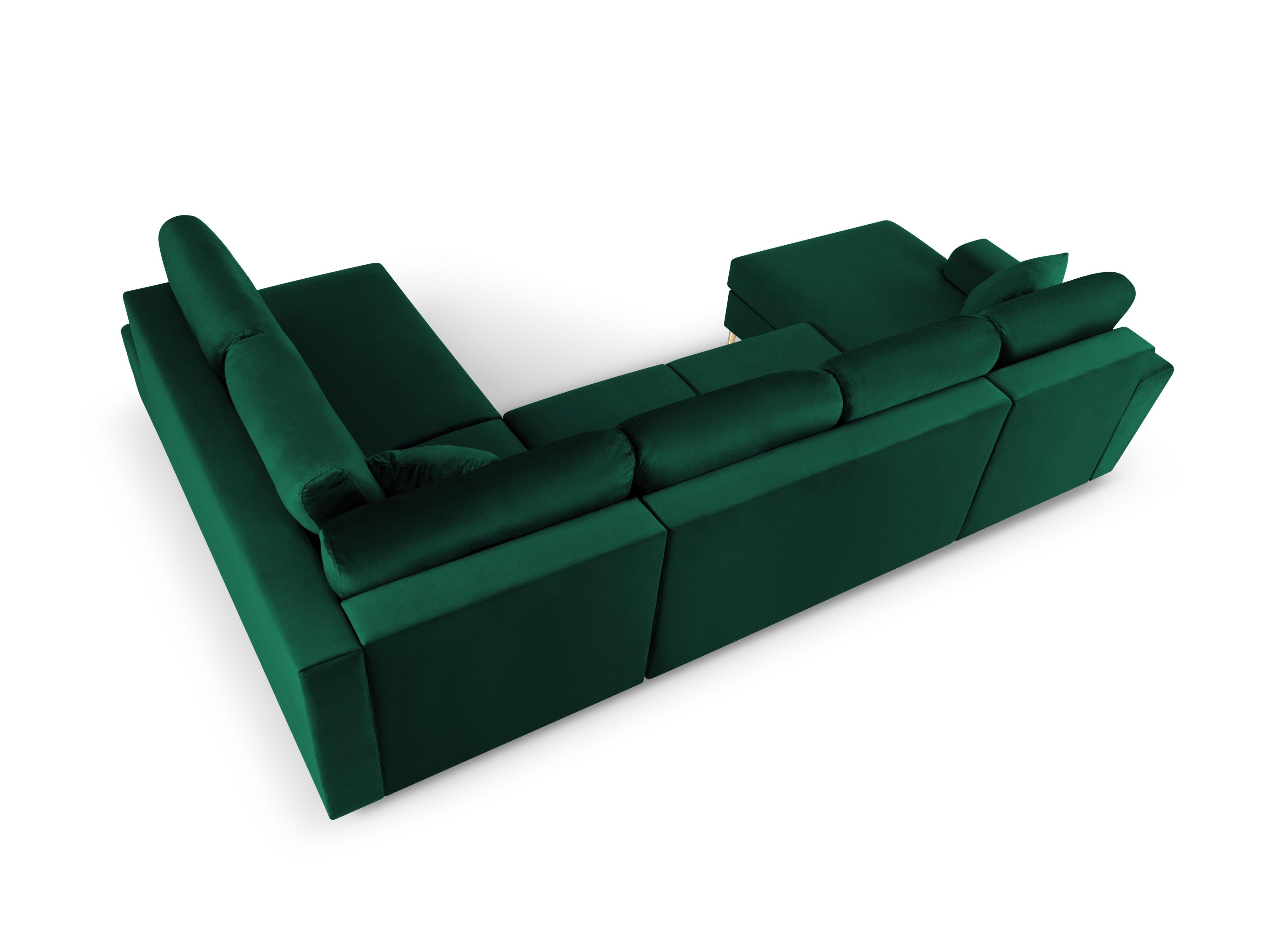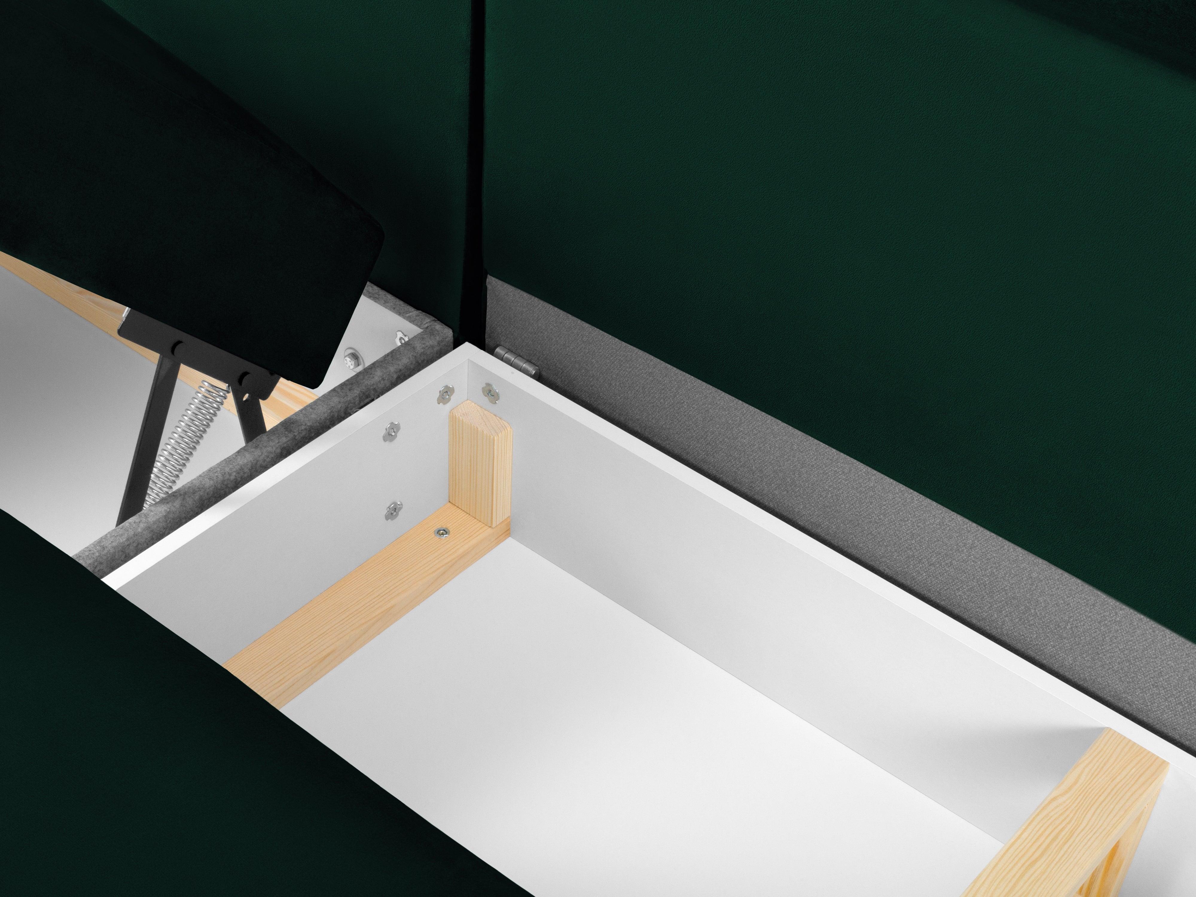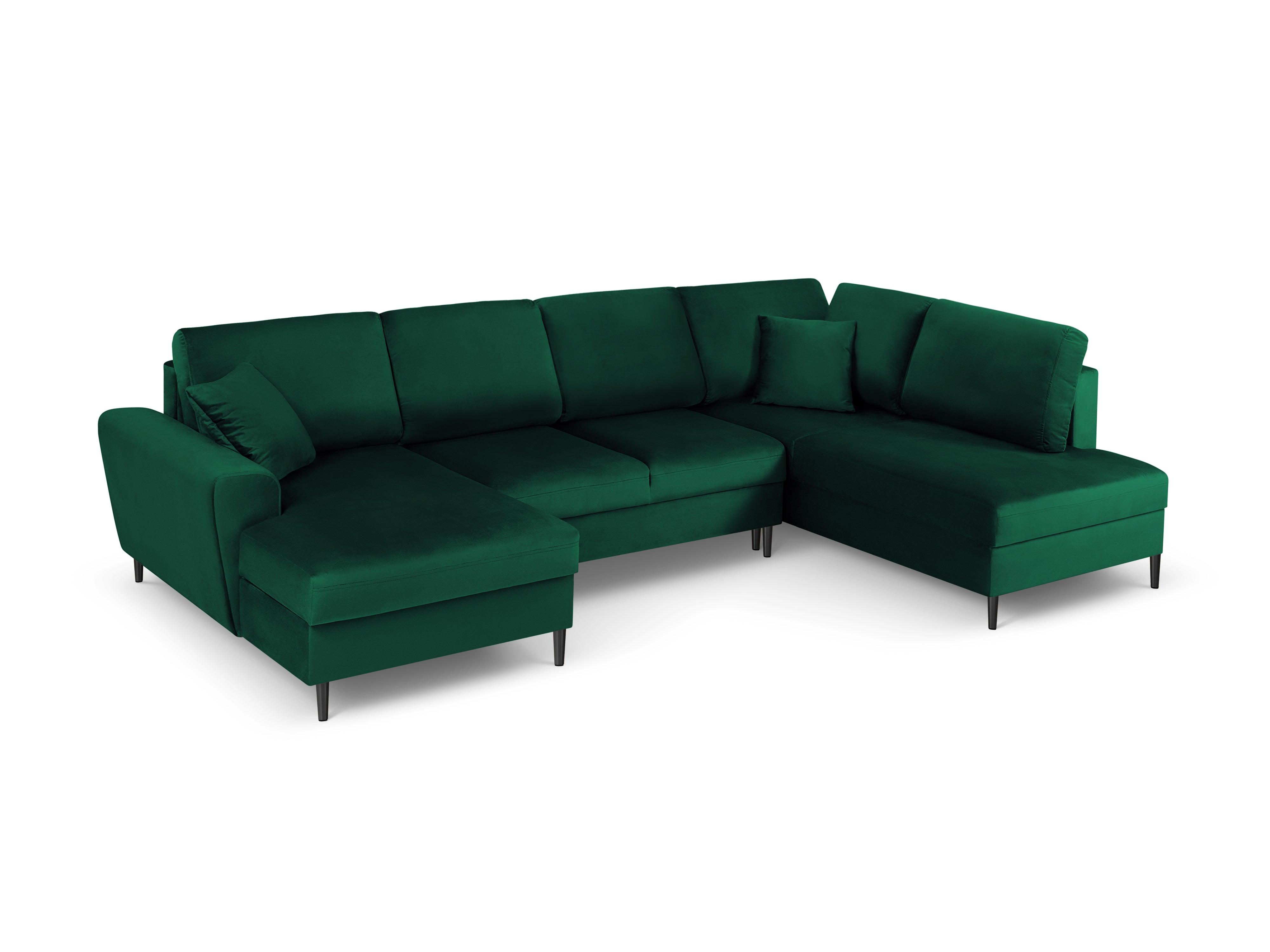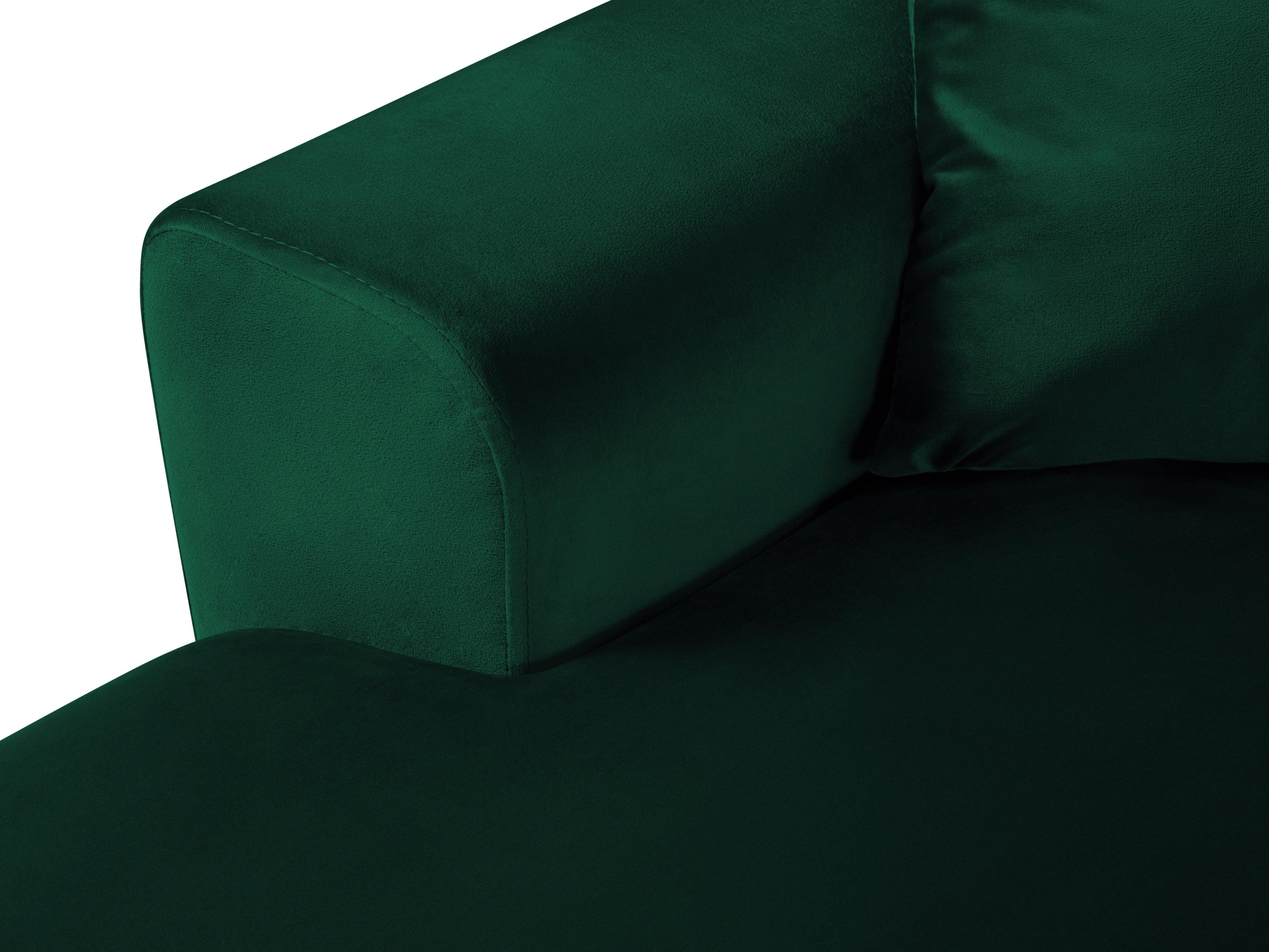 Narożnik prawostronny aksamitny panoramiczny z funkcją spania KYOTO butelkowa zieleń z czarną podstawą Cosmopolitan Design    Eye on Design