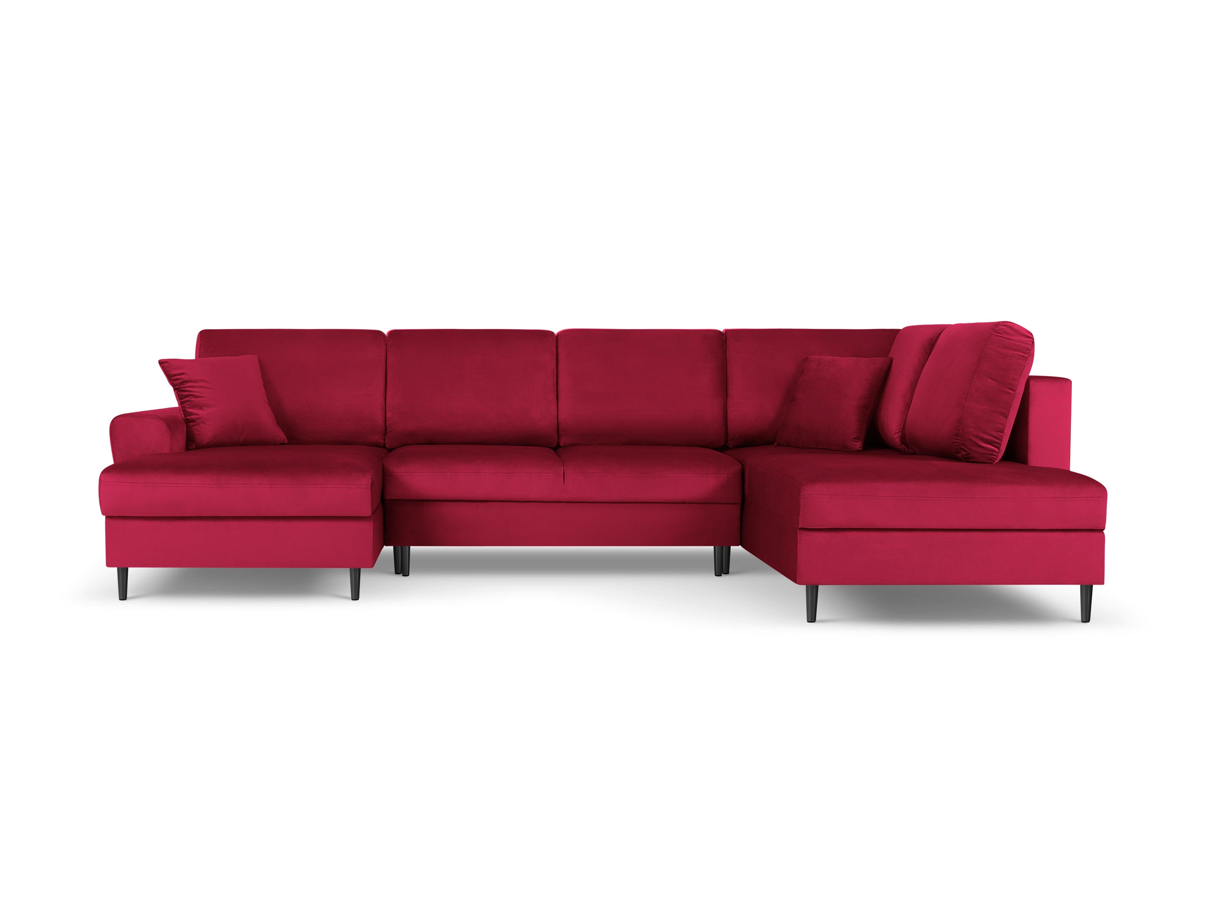 Narożnik prawostronny aksamitny panoramiczny z funkcją spania KYOTO czerwony z czarną podstawą Cosmopolitan Design    Eye on Design