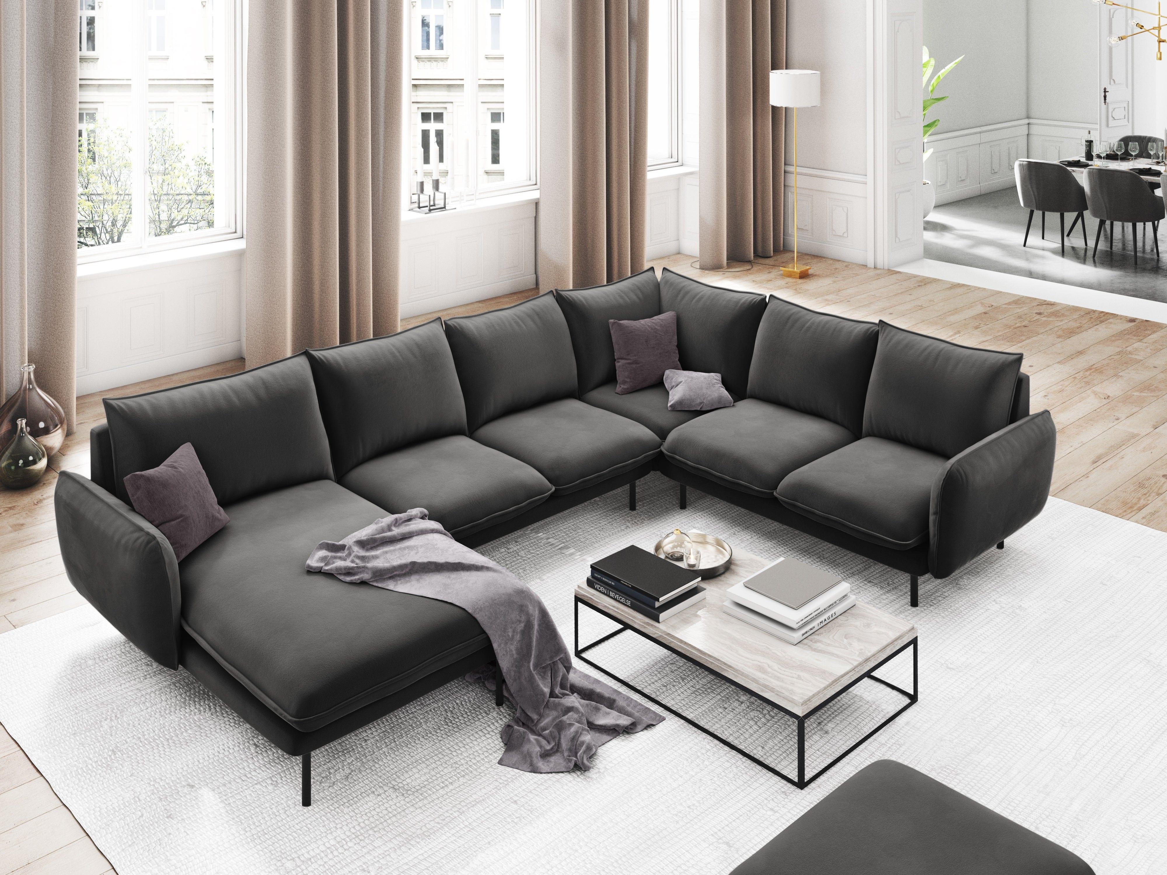 Narożnik prawostronny aksamitny panoramiczny VIENNA ciemnoszary z czarną podstawą Cosmopolitan Design    Eye on Design