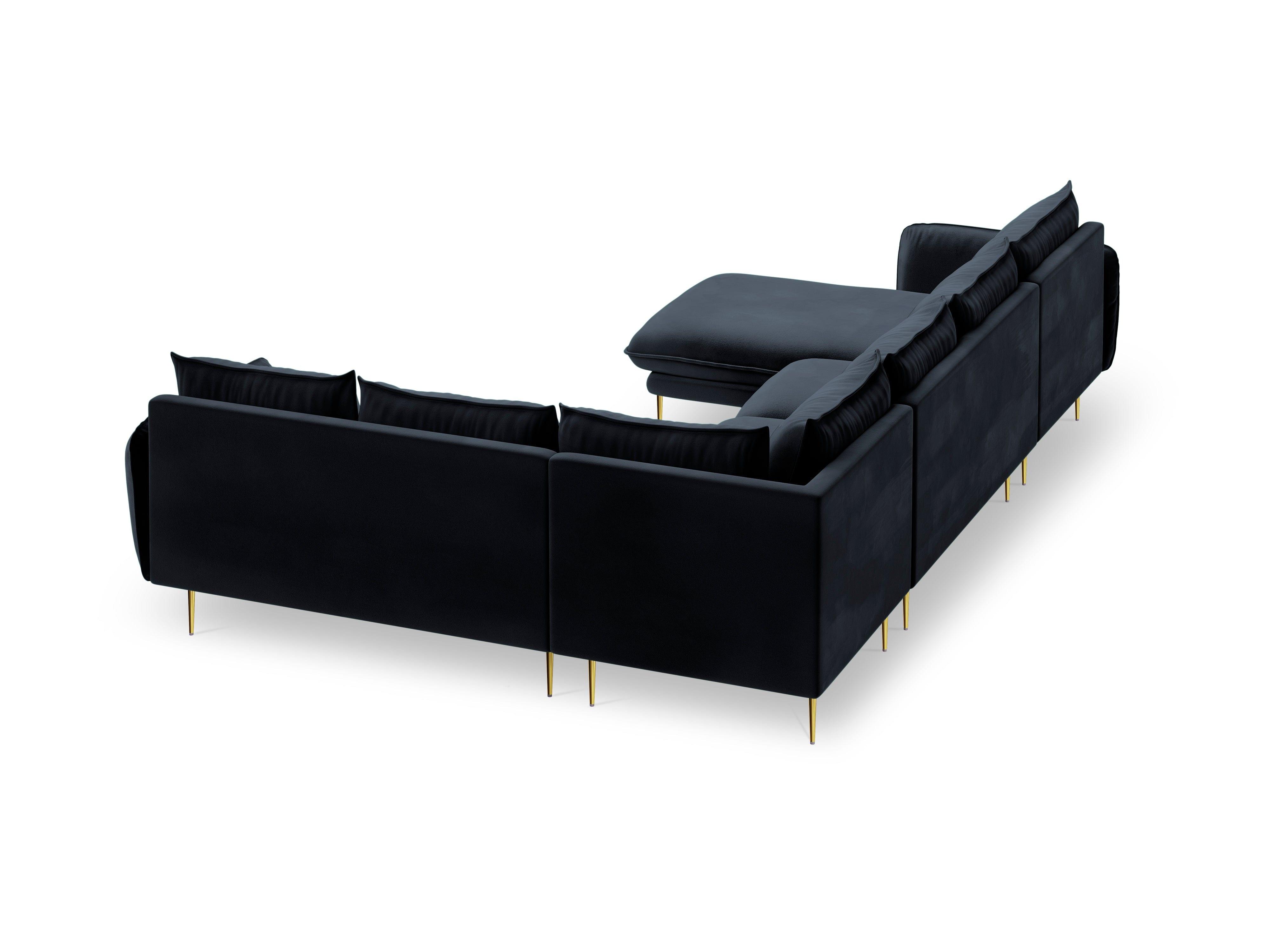 Narożnik prawostronny aksamitny panoramiczny VIENNA granatowy ze złotą podstawą Cosmopolitan Design    Eye on Design