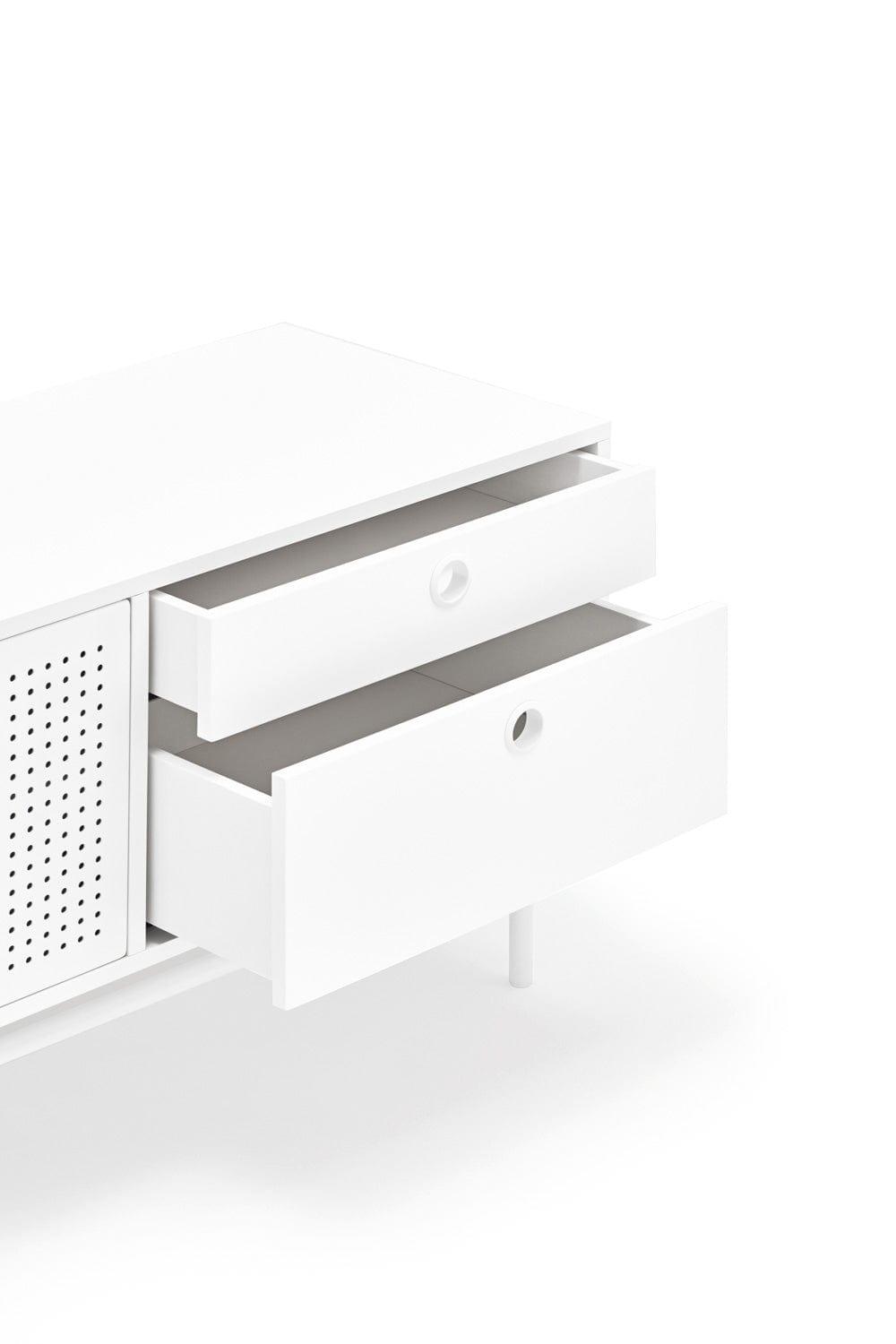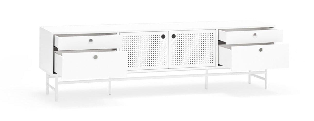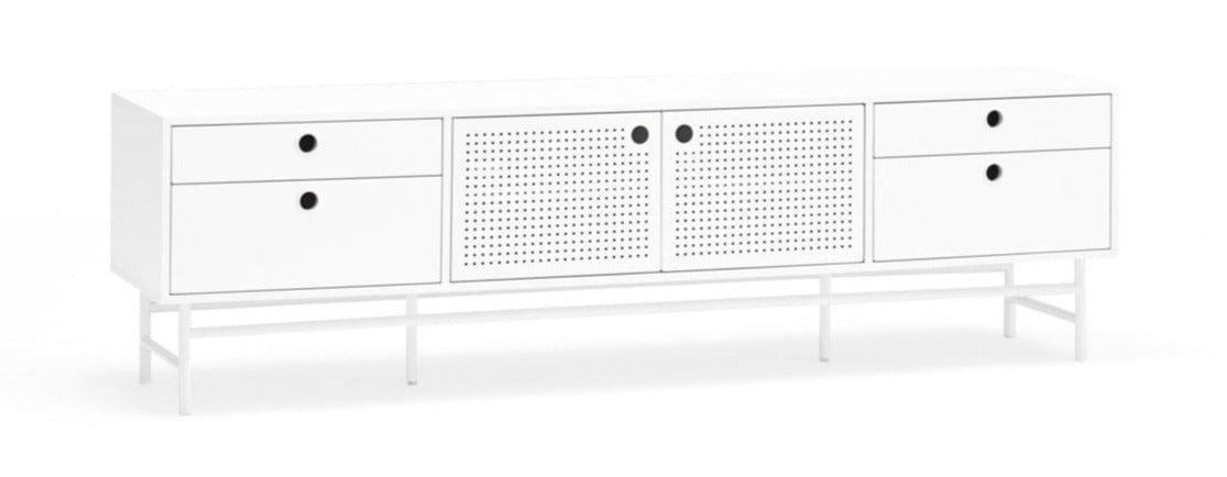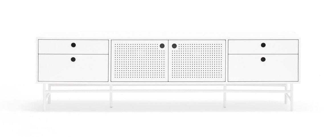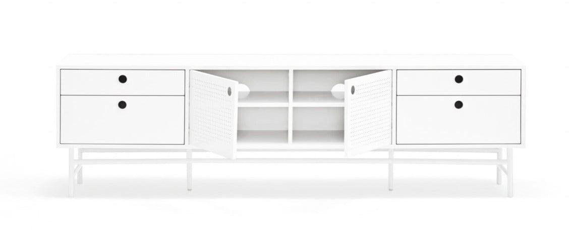 Weißer RTV -Kabinett Punto ist ein Projekt der spanischen Marke Teulat Connecting Klassiker mit originaler Moderne. Die Verwendung von Materialien wie Stahl machte es Fernsehschrank Punto hat in einem Loft -Klima einen einzigartigen Stil gewonnen.