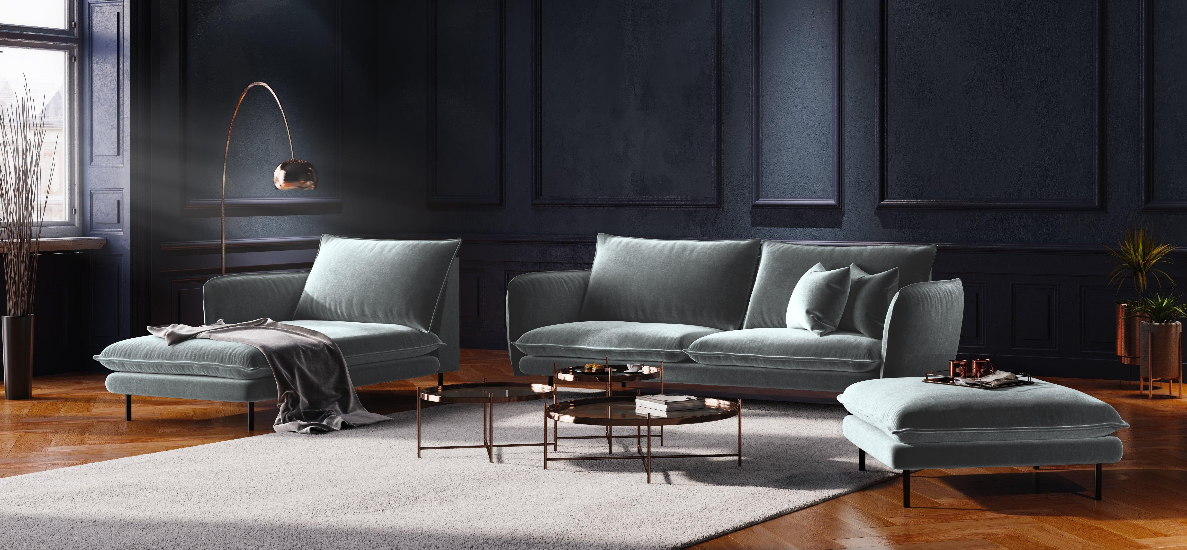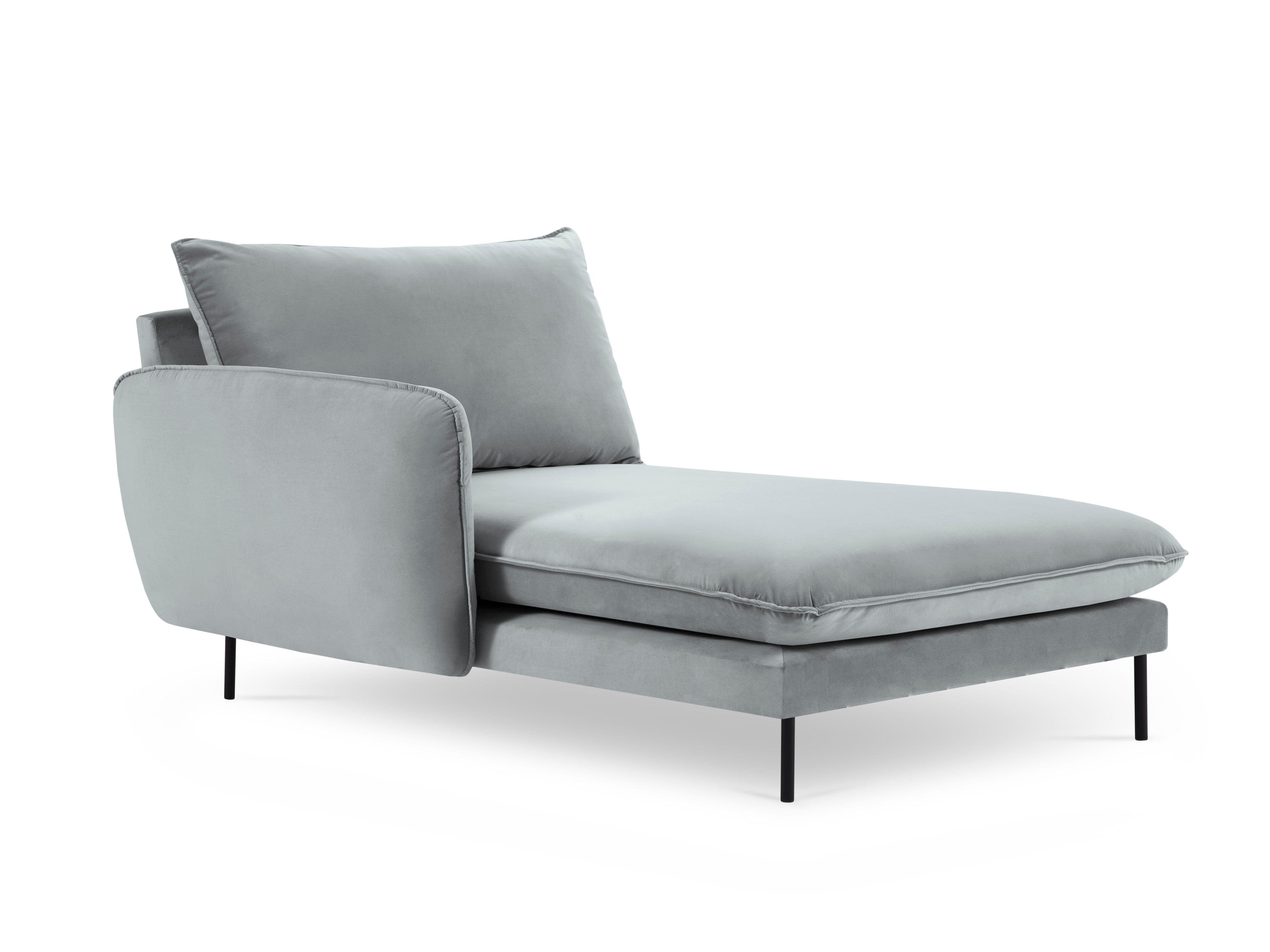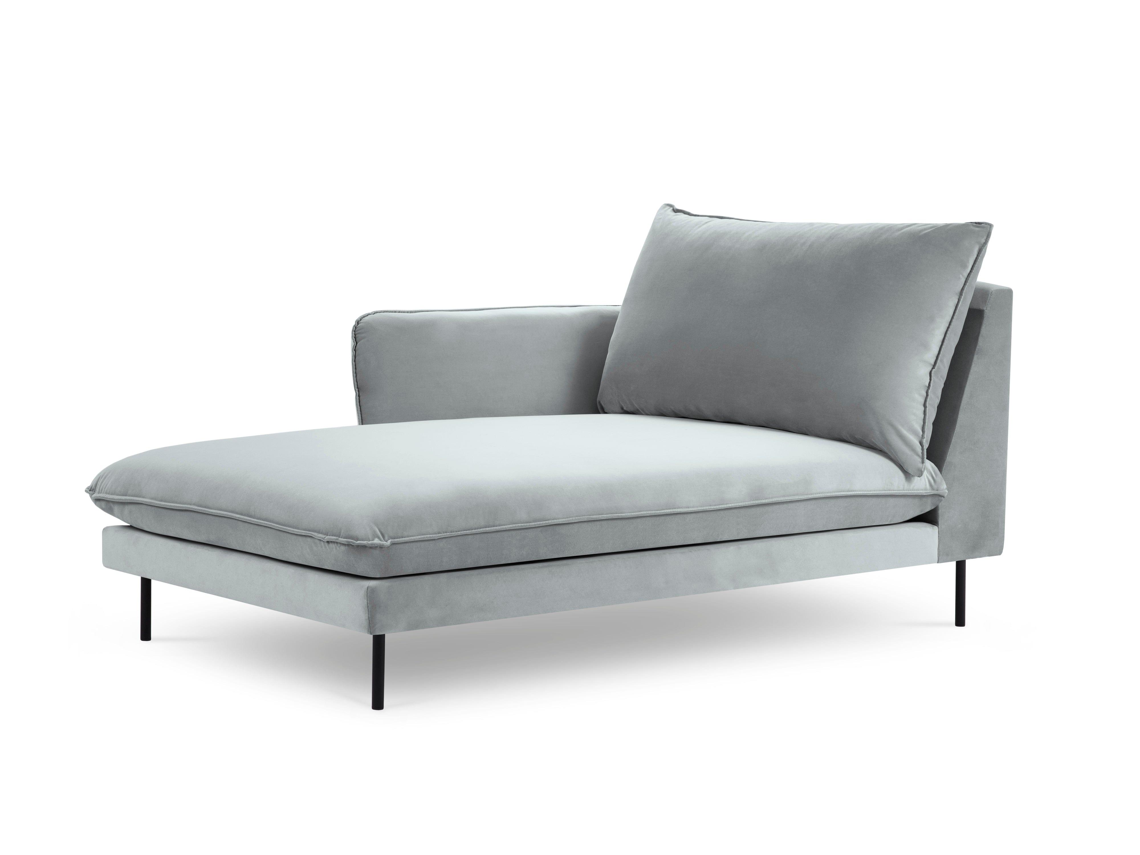 Szezlong aksamitny lewostronny VIENNA jasnoszary z czarną podstawą Cosmopolitan Design    Eye on Design