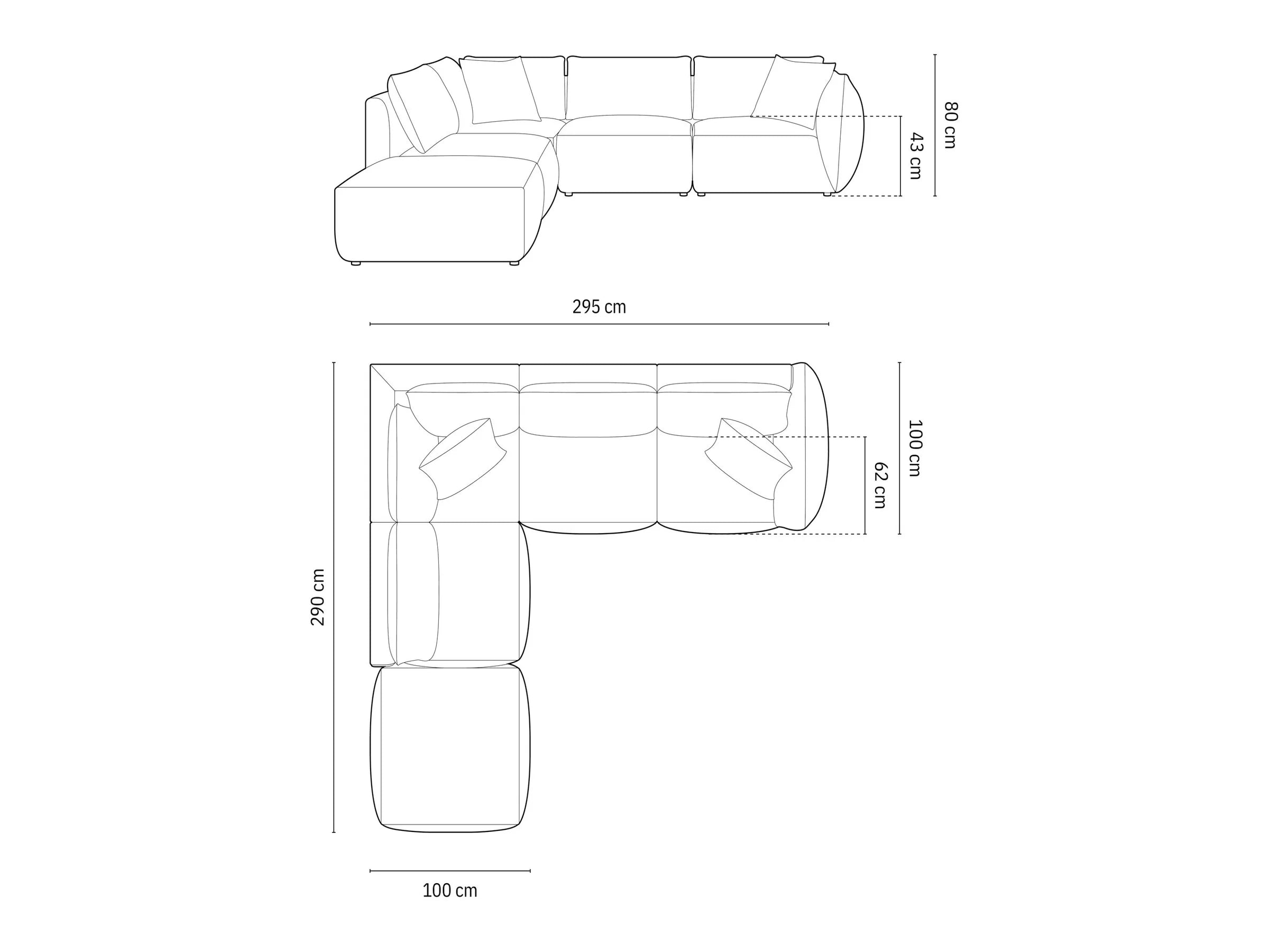 Das ausgeklügelte Design und die sorgfältige Verarbeitung machen das Ecksofa Chris nicht nur zu einem Möbelstück, sondern auch zu einer eleganten Dekoration des Raumes. Seine Funktionalität wird durch starke Modulverbindungen und hochwertige Materialien unterstrichen, die Langlebigkeit und Widerstandsfähigkeit im Alltag gewährleisten. Es ist die perfekte Wahl für Menschen, die Komfort, Stil und zeitlose Qualität in einem Möbelstück vereinen möchten.