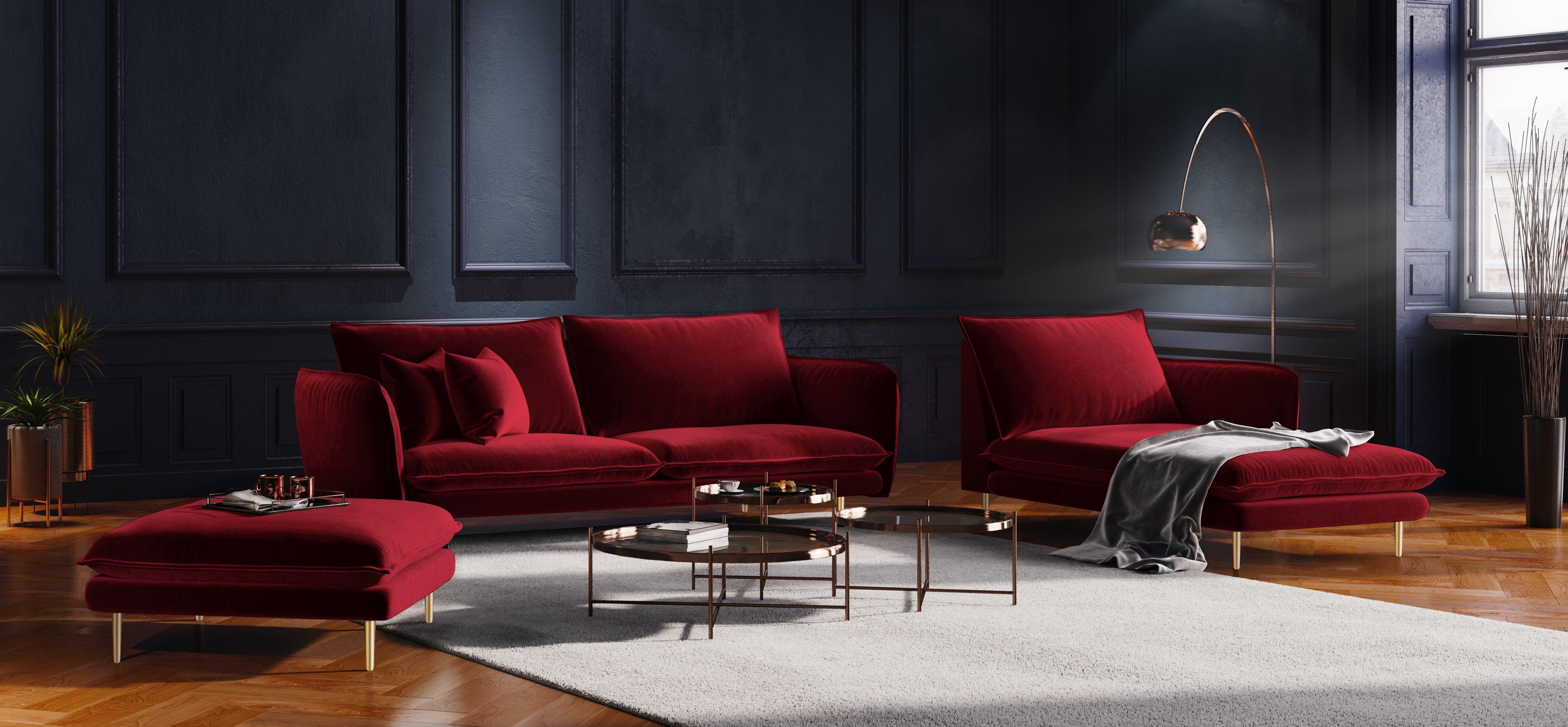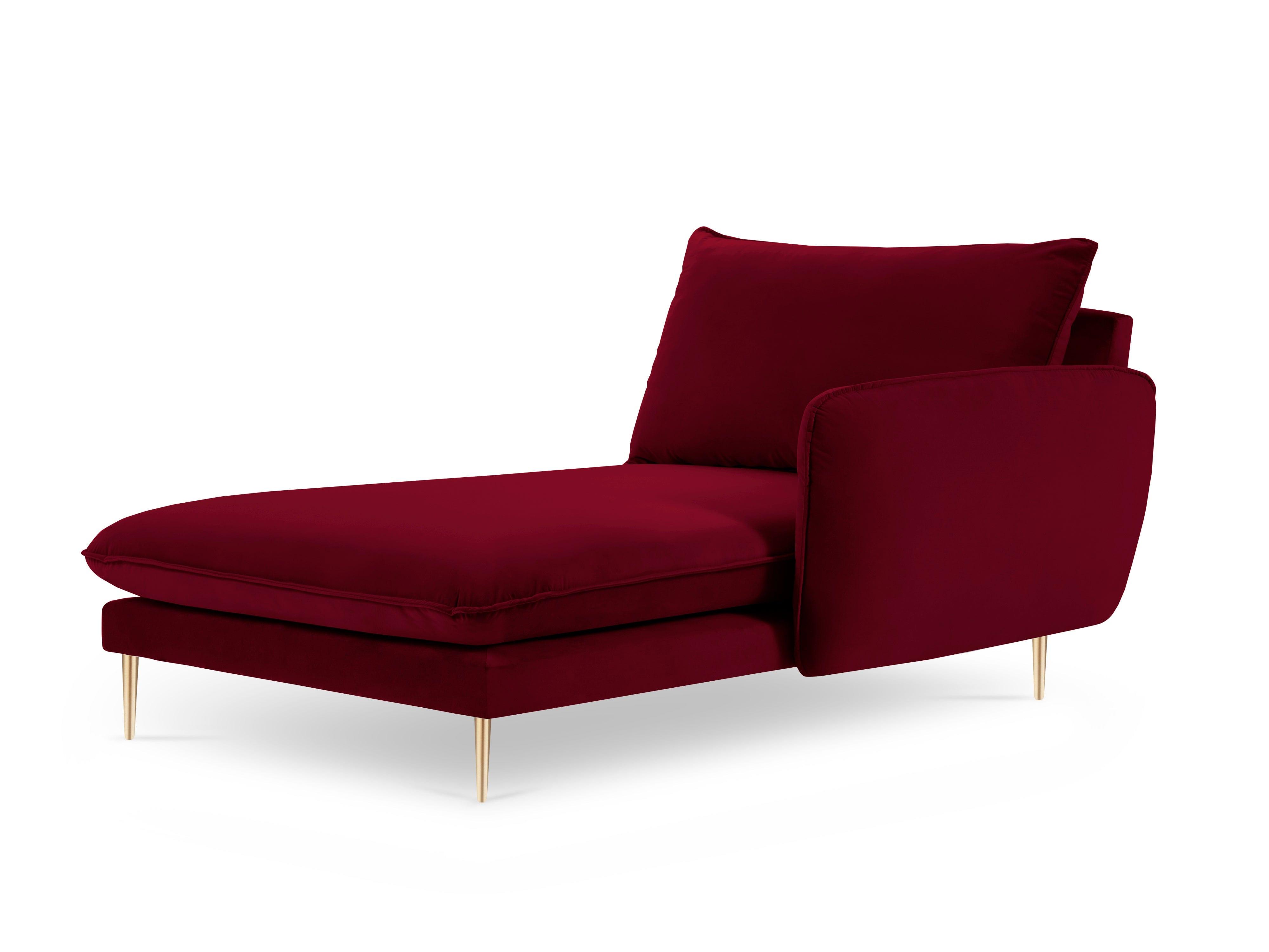 Szezlong aksamitny prawostronny VIENNA bordowy ze złotą podstawą Cosmopolitan Design    Eye on Design