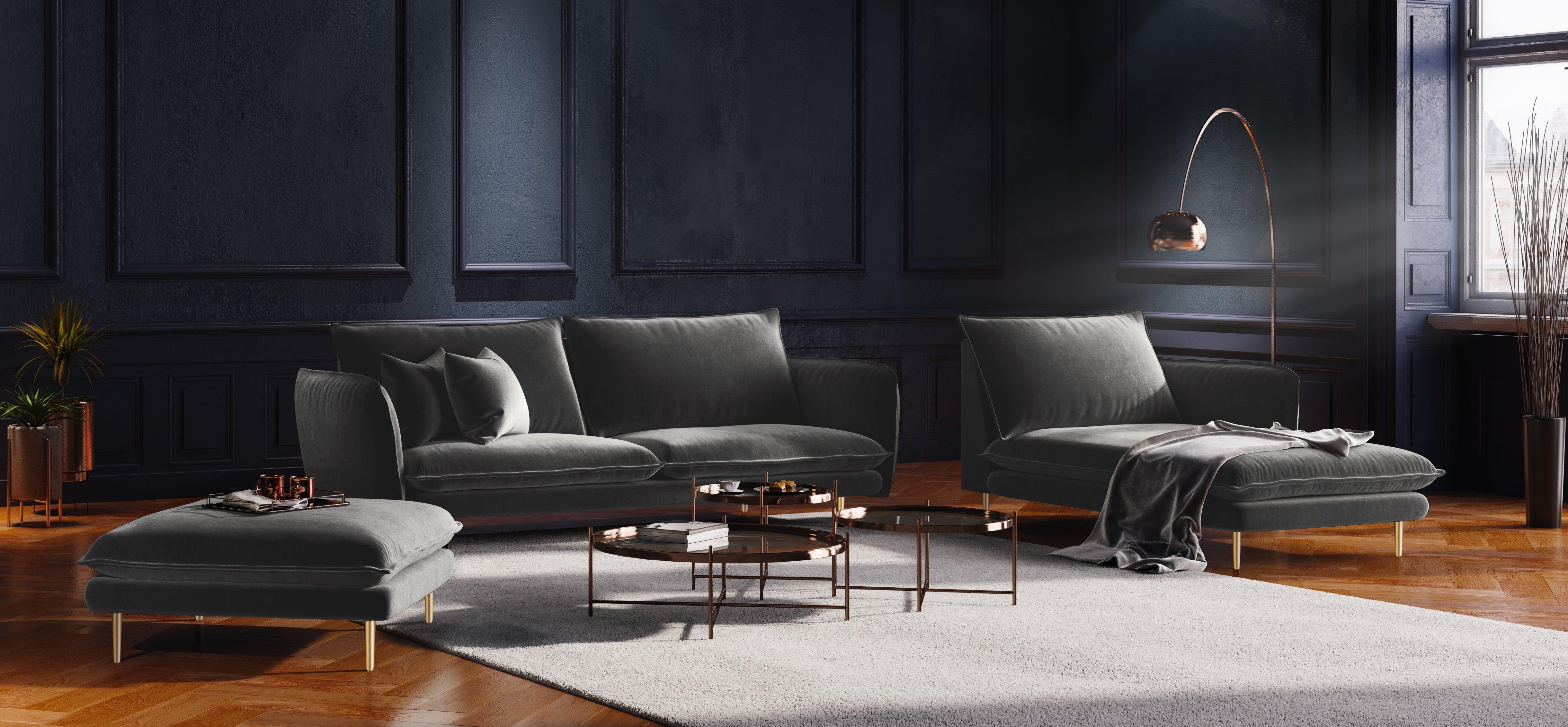 Szezlong aksamitny prawostronny VIENNA ciemnoszary ze złotą podstawą Cosmopolitan Design    Eye on Design