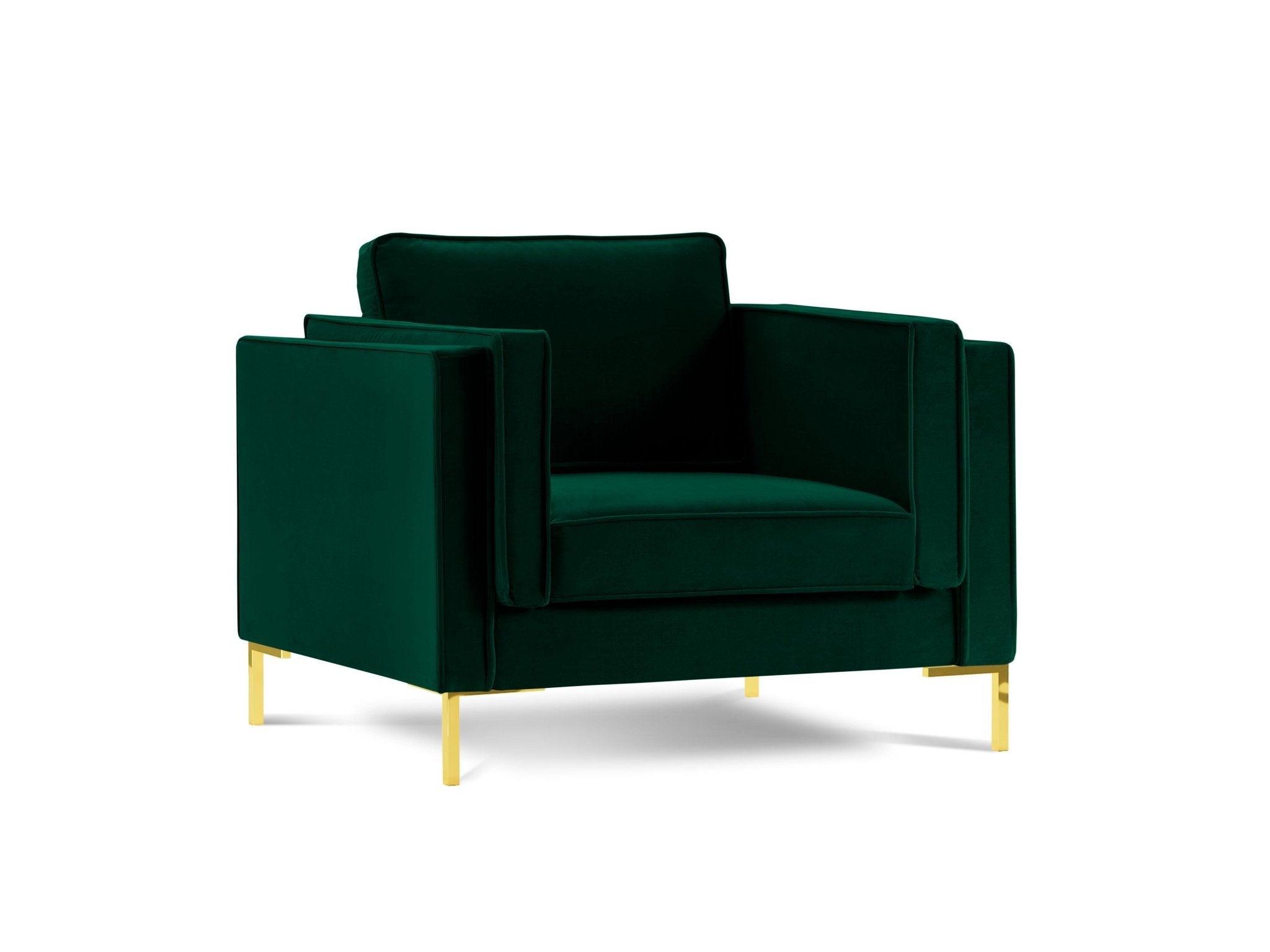 Fotel aksamitny LUIS zieleń butelkowa ze złotą podstawą Milo Casa    Eye on Design