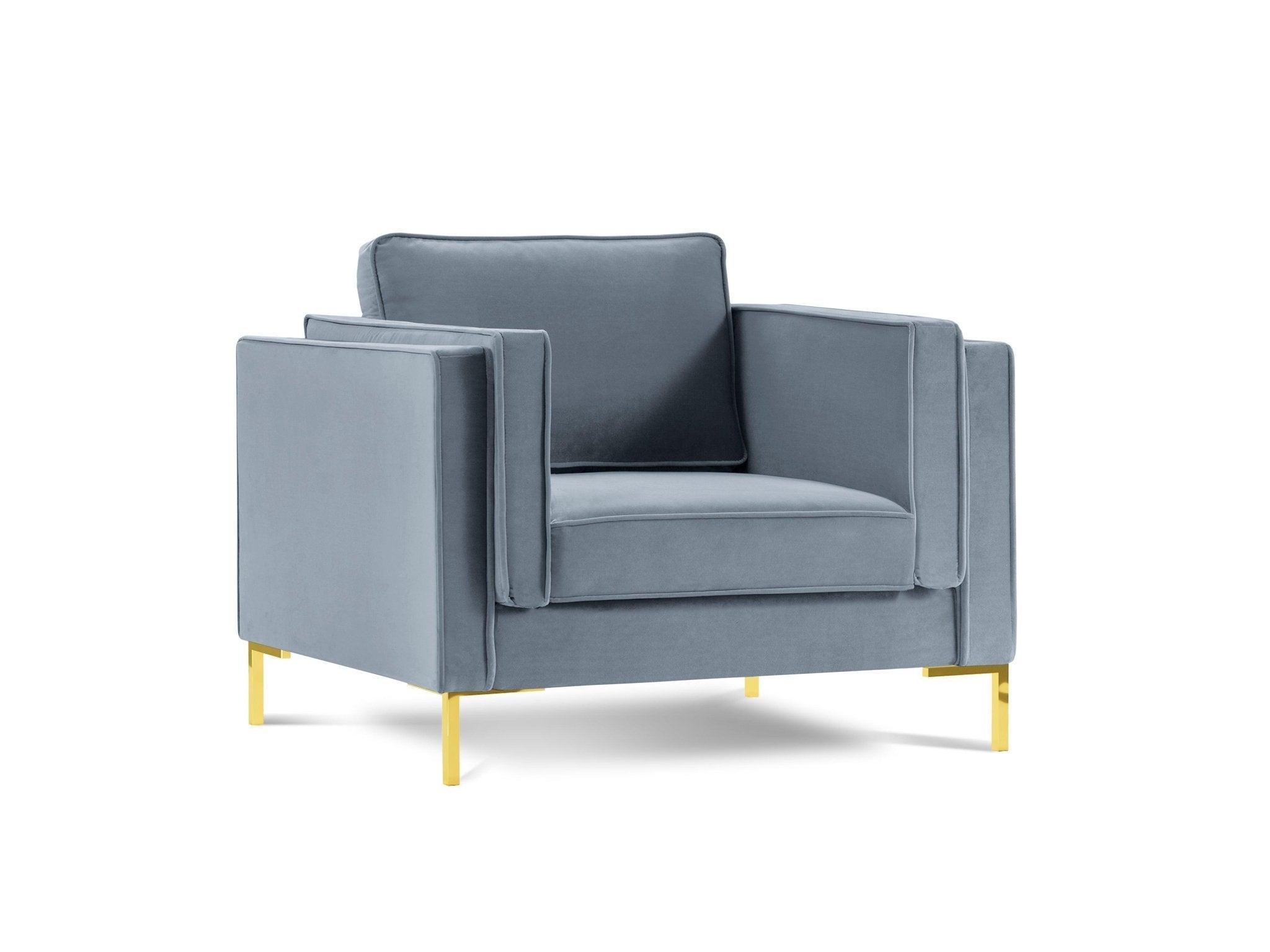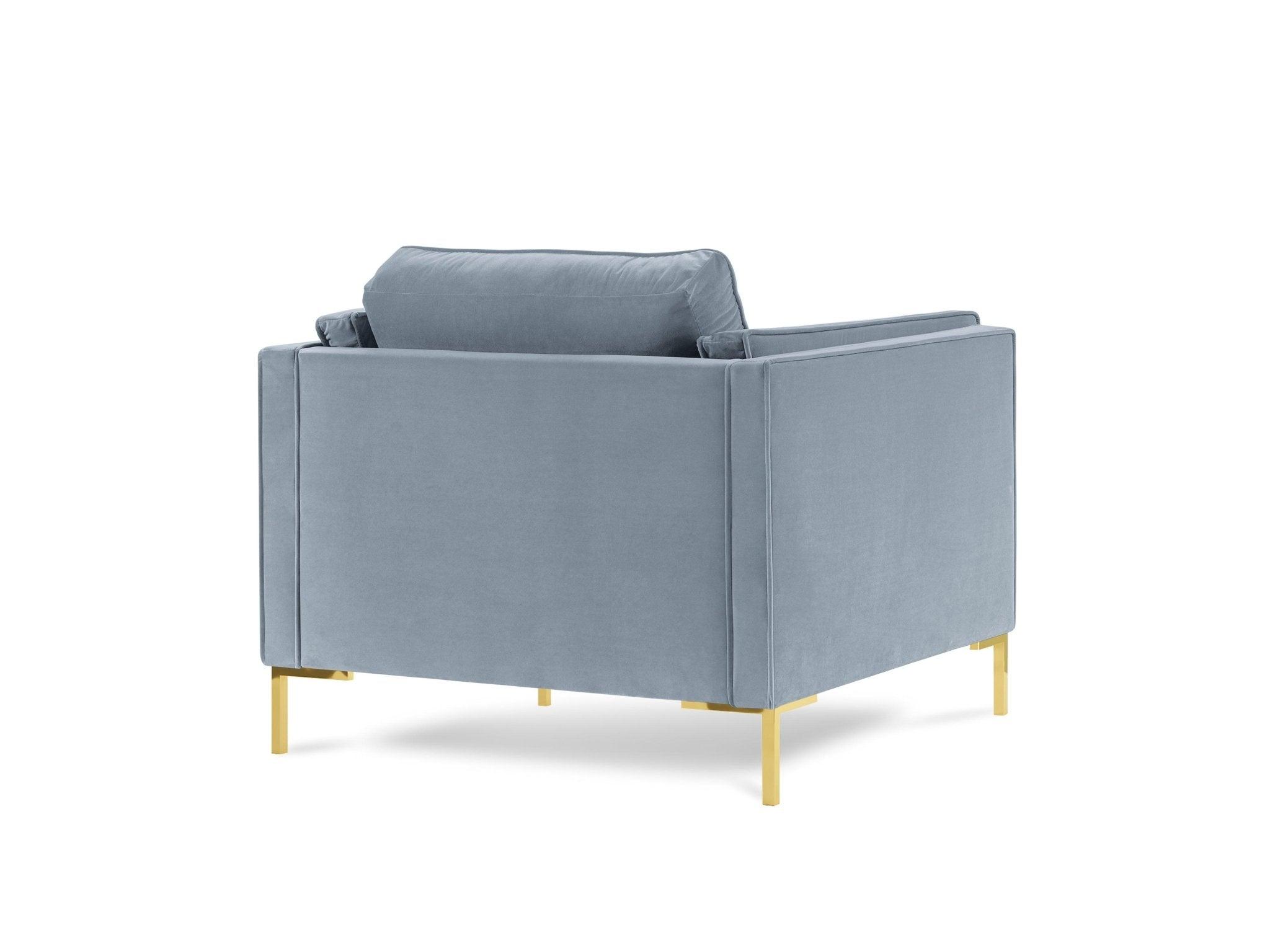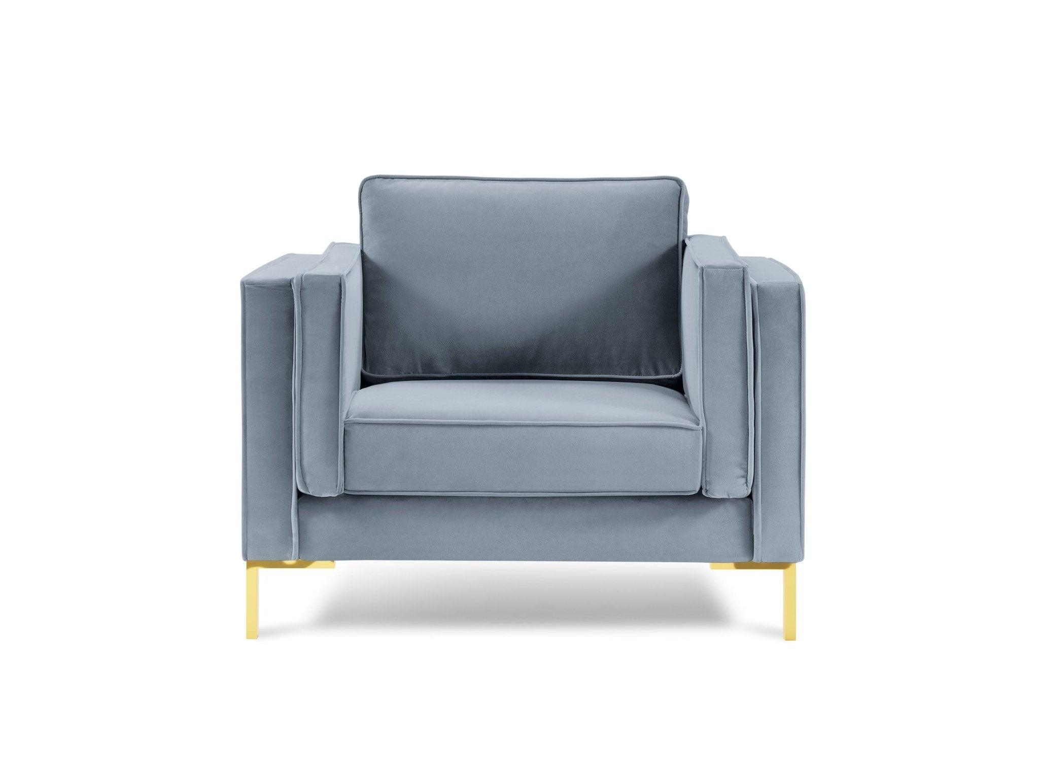 Samt Sessel Luis Hellblau mit einer goldenen Basis