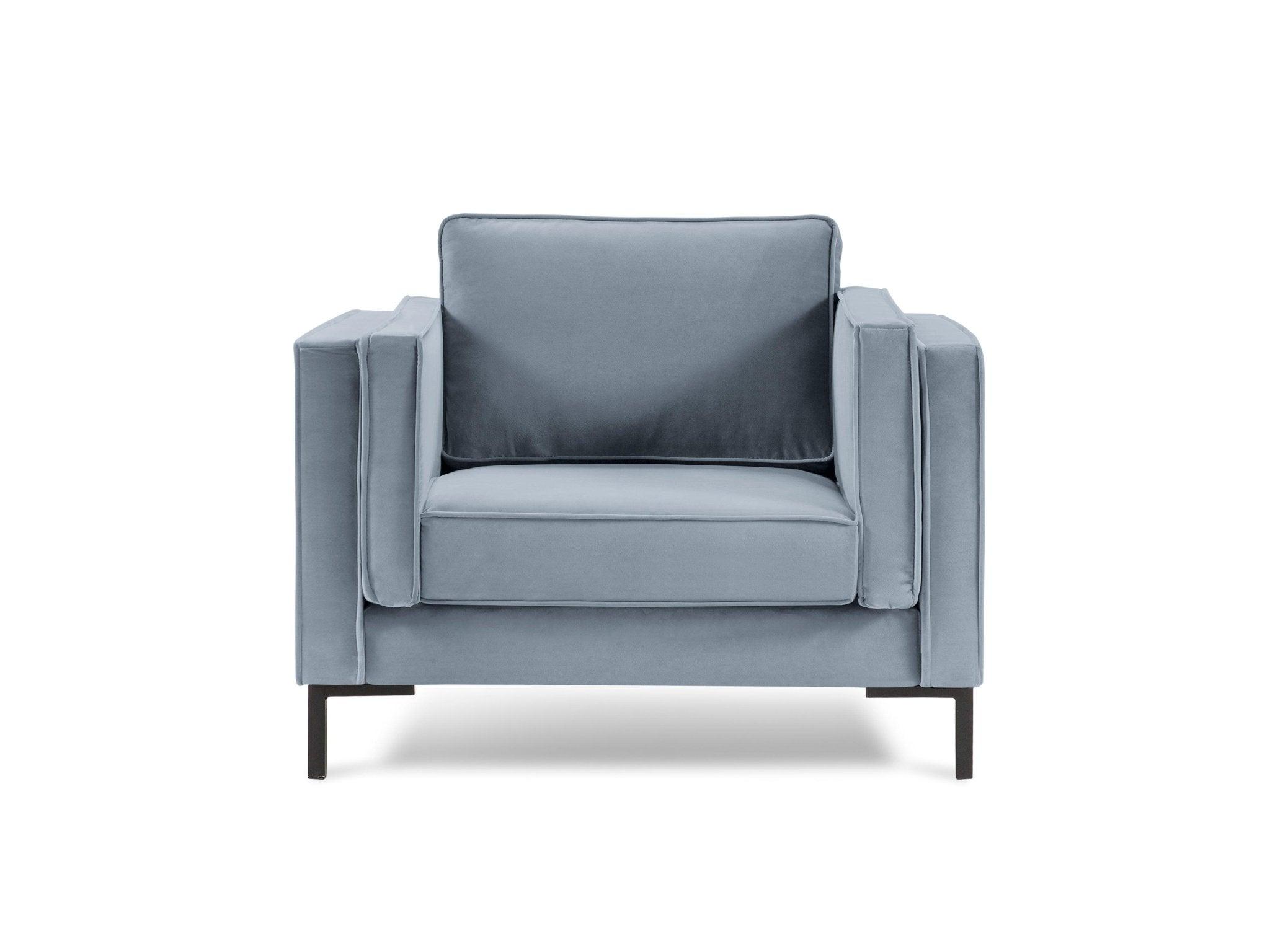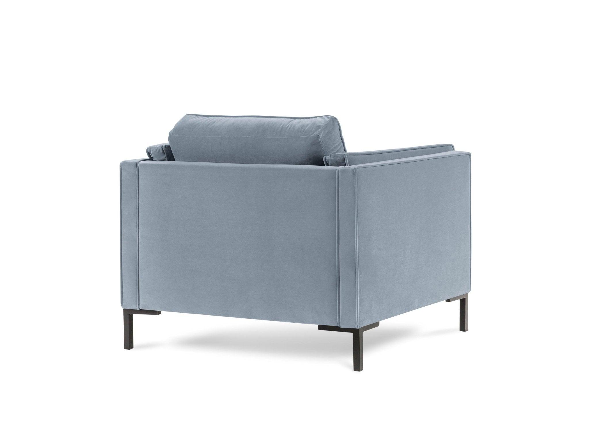 Fotel aksamitny LUIS jasnoniebieski z czarną podstawą Milo Casa    Eye on Design