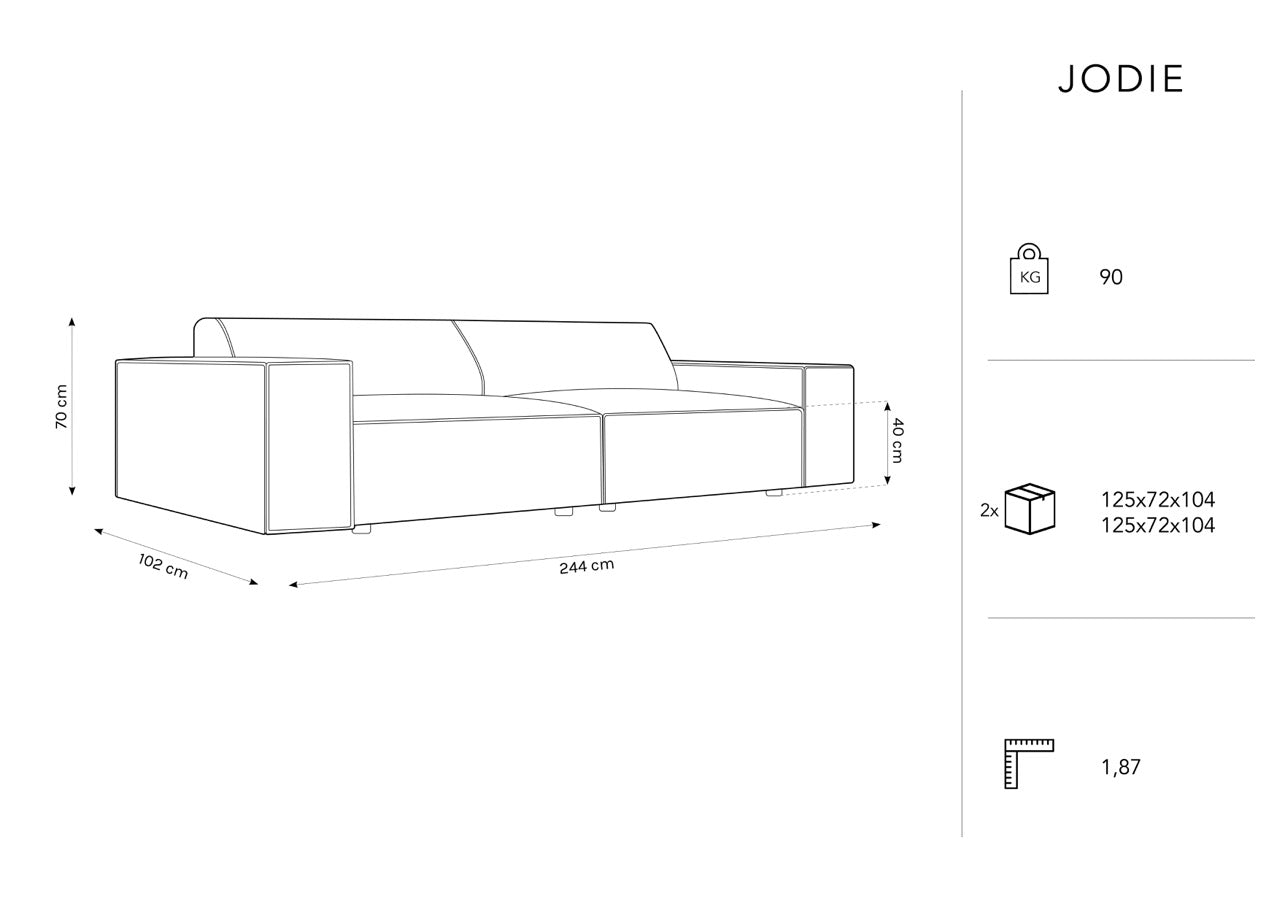 Sofa für vier Menschen Jodie ist nicht nur ein bequemer Sitz, sondern auch ein Dekorationselement, das dem Innenraum Eleganz verleiht. Es bestand aus hochwertigem Samtstoff, was nicht nur hervorragenden Komfort garantiert, sondern auch die langfristige Lebensdauer der Möbel. Ein bequemer Sitz und eine bequeme Rückenlehne sorgt für hervorragende Bedingungen für Entspannung und Ruhe, und breite Armlehnen ermöglichen eine kostenlose Faulen- und bequeme Handunterstützung.
