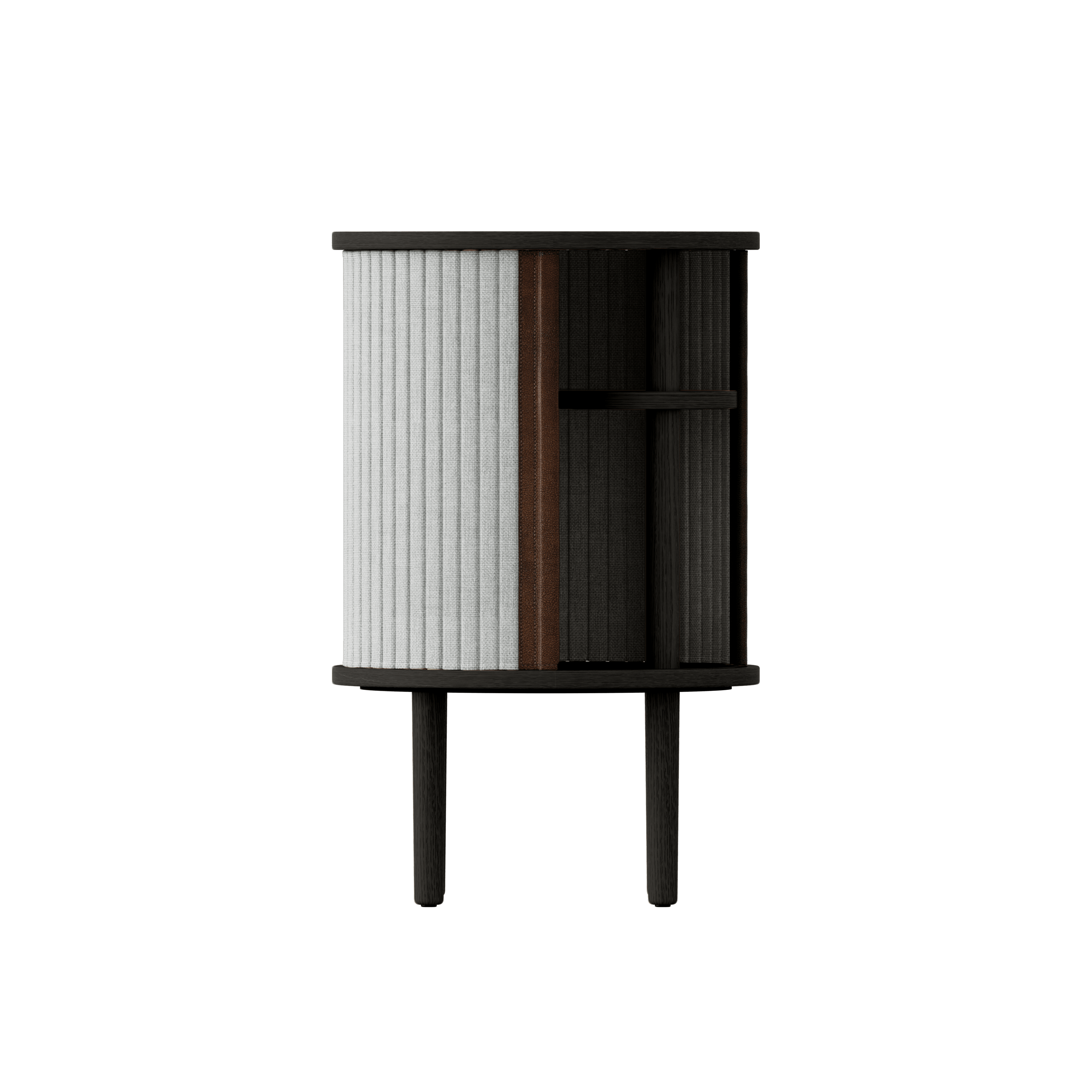 Erhältlich in drei Farben: natürliche Eiche, dunkle Eiche und schwarze Eiche mit Jalousien in vier sorgfältig ausgewählten Farben des Horizons, 100% recycelt. Die Jalousien sind austauschbar, was bedeutet, dass Sie sie leicht selbst ändern können und dem Projekt ein neues Leben hinzufügen können, ohne dass ein völlig neues Möbel gekauft werden muss, was gleichzeitig zur Rettung von Weltressourcen beiträgt.
