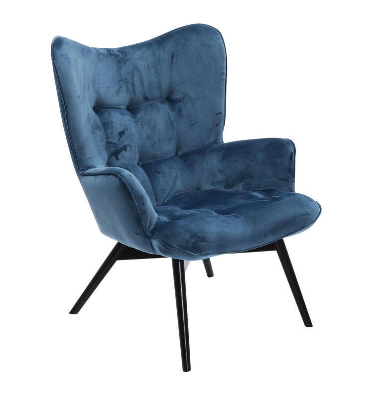 Fotel uszak VICKY niebieski welwet z czarną podstawą - Eye on Design