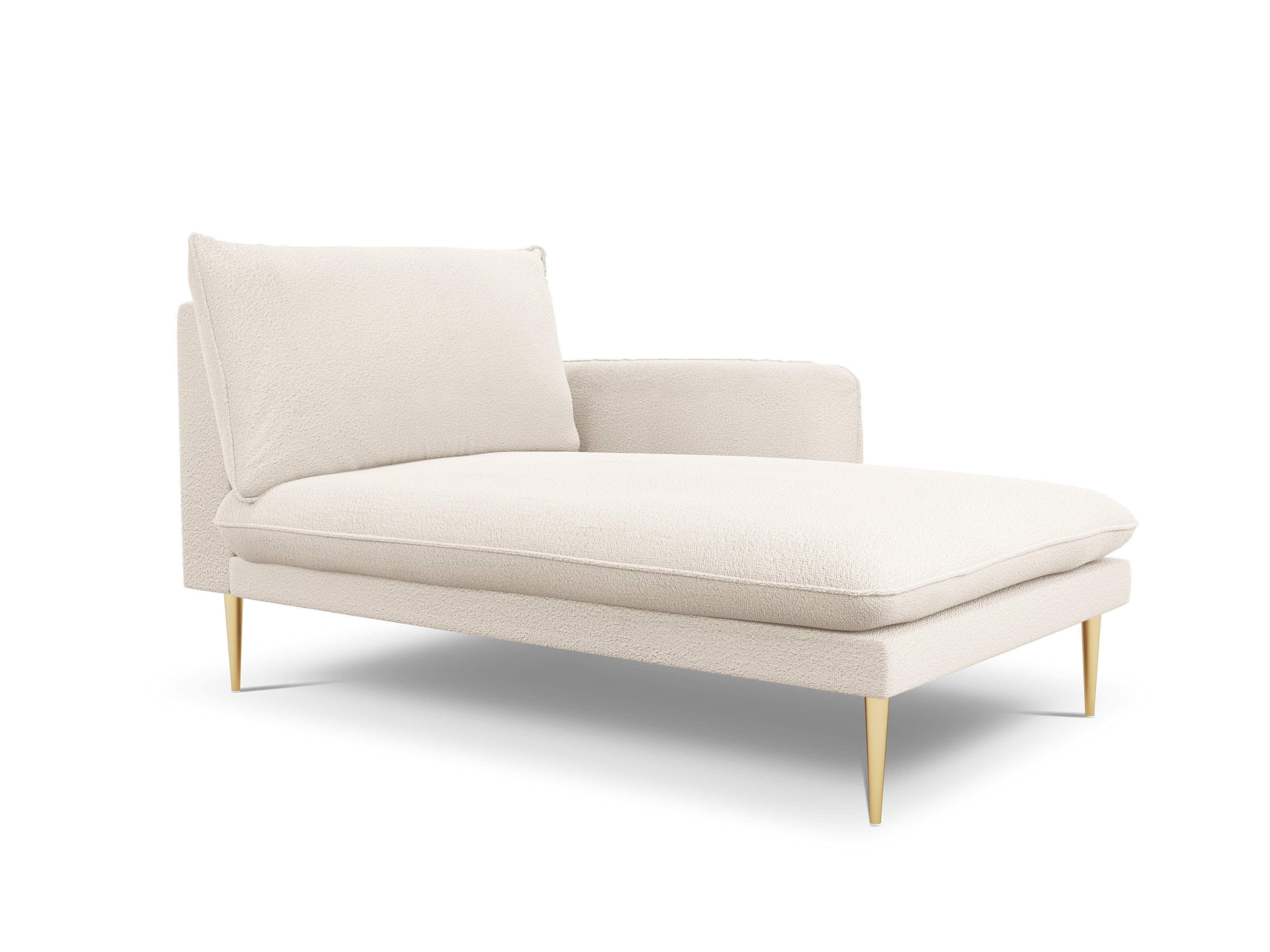 Szezlong w tkaninie boucle prawostronny VIENNA beżowy ze złotą podstawą Cosmopolitan Design    Eye on Design