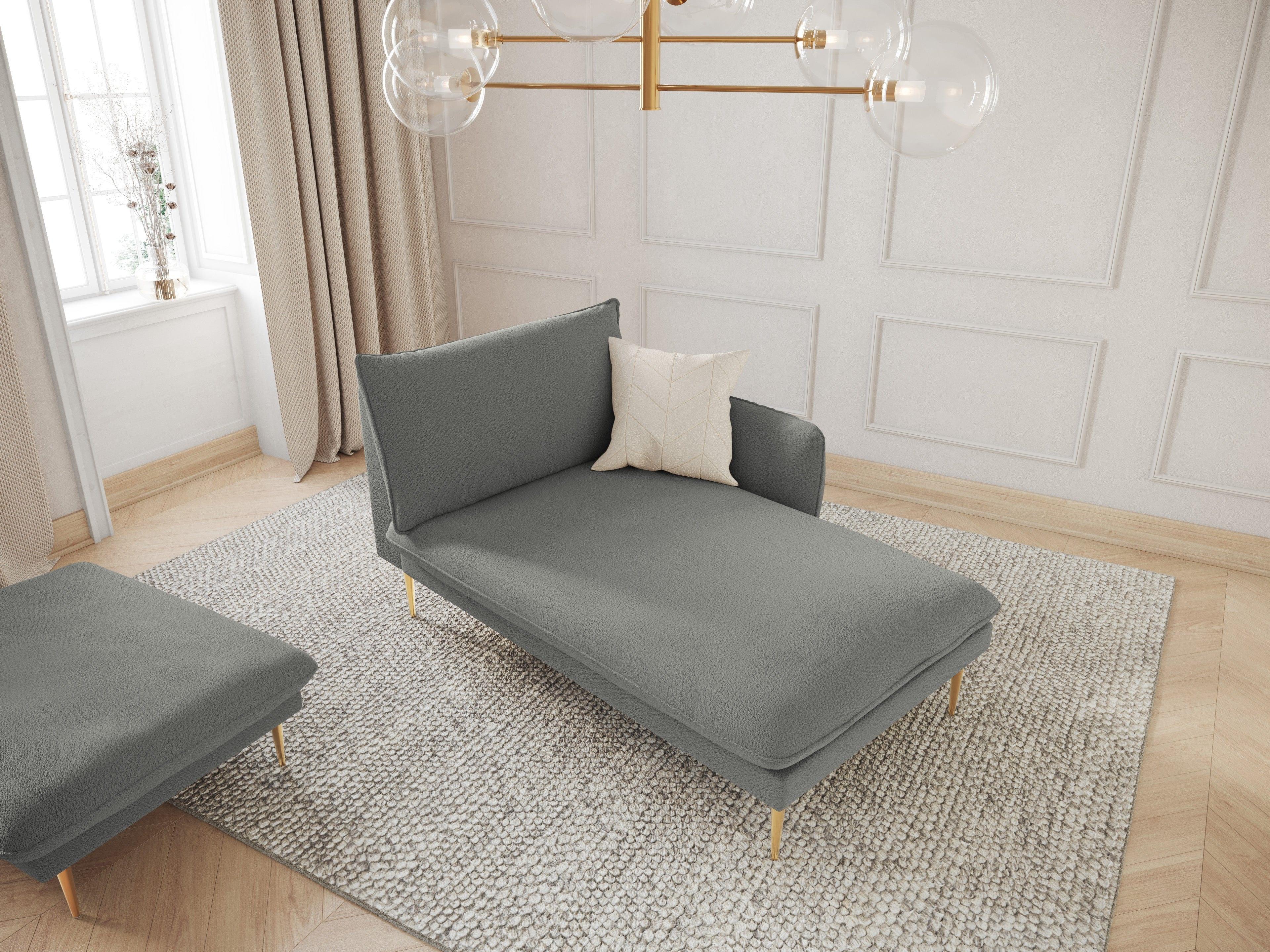 Szezlong w tkaninie boucle prawostronny VIENNA szary ze złotą podstawą Cosmopolitan Design    Eye on Design