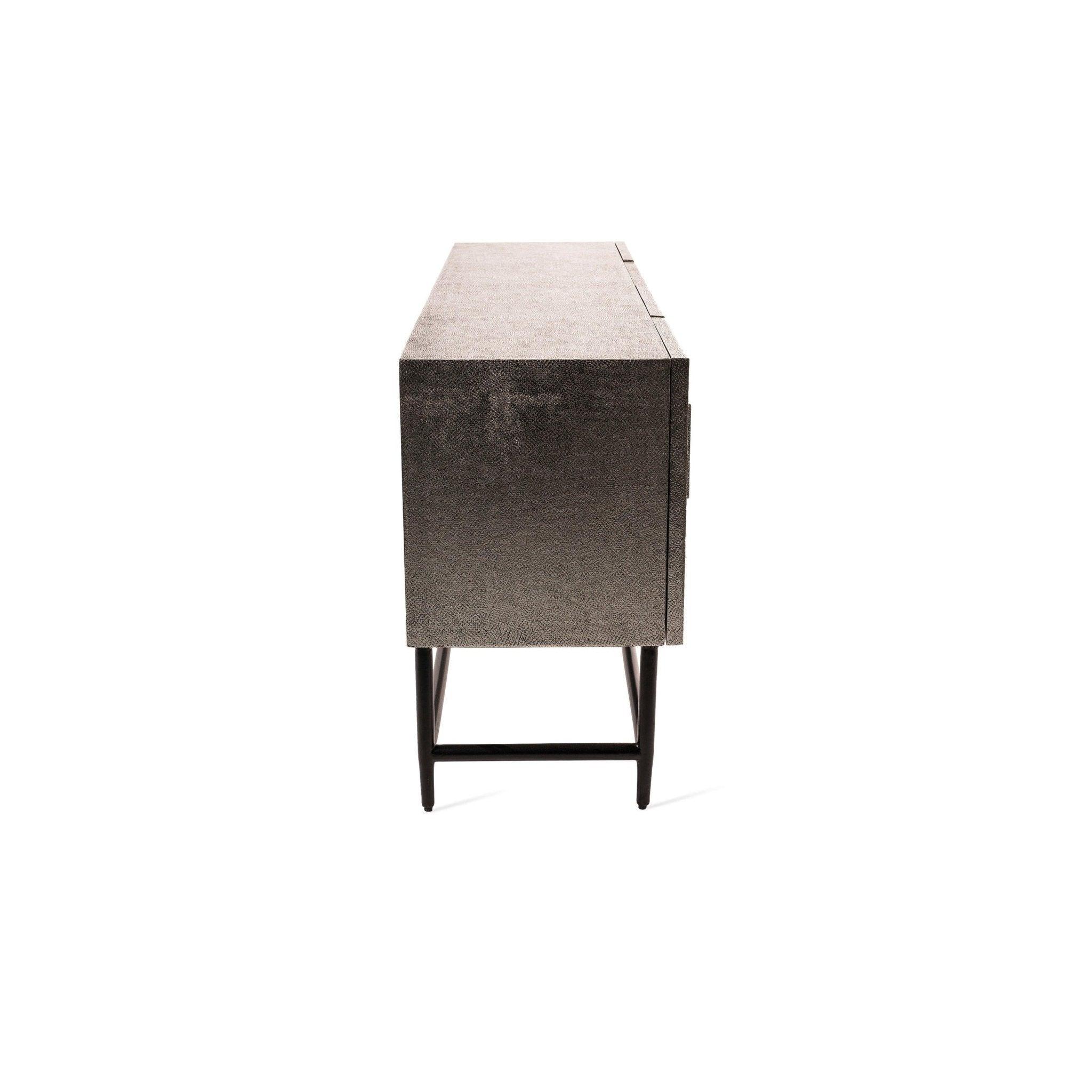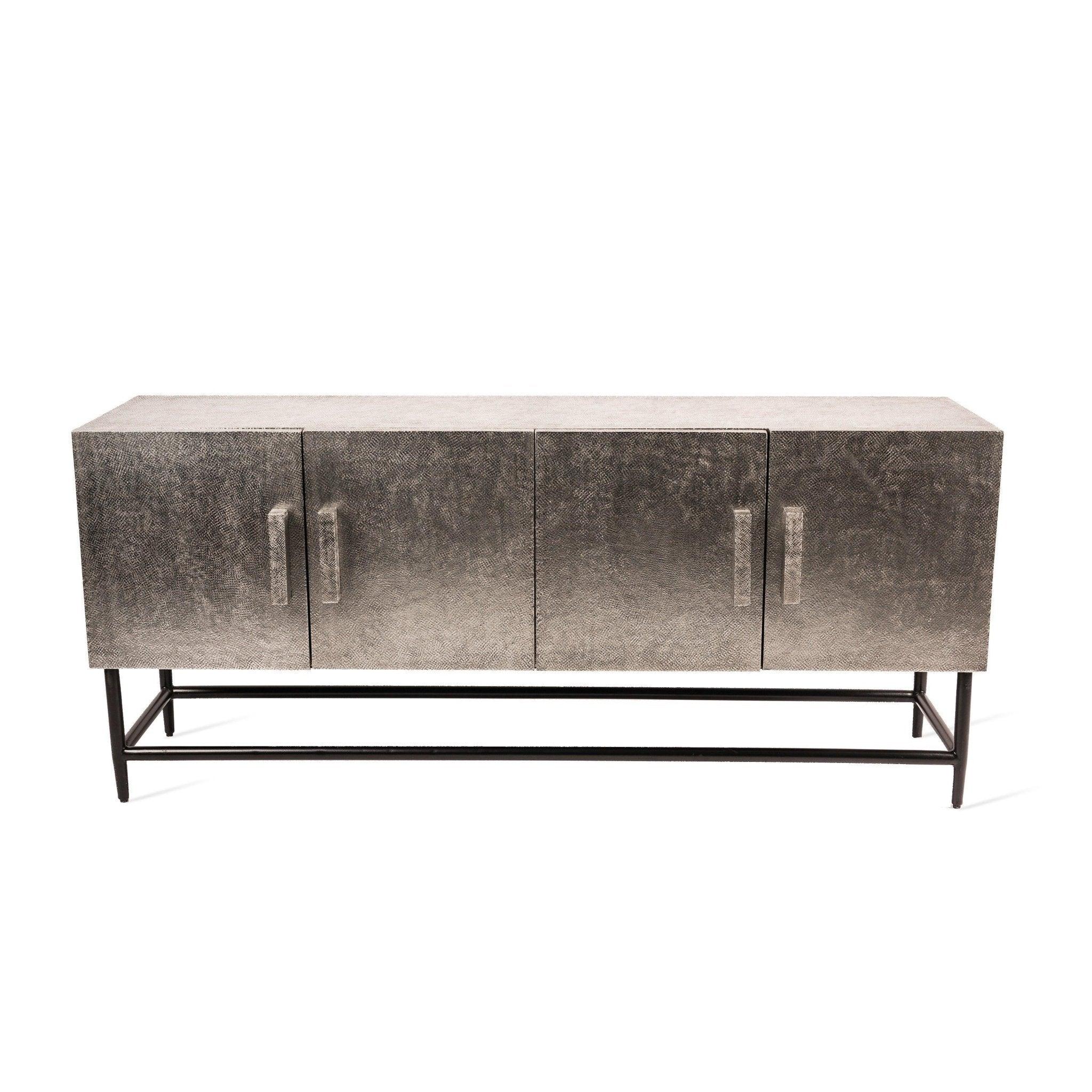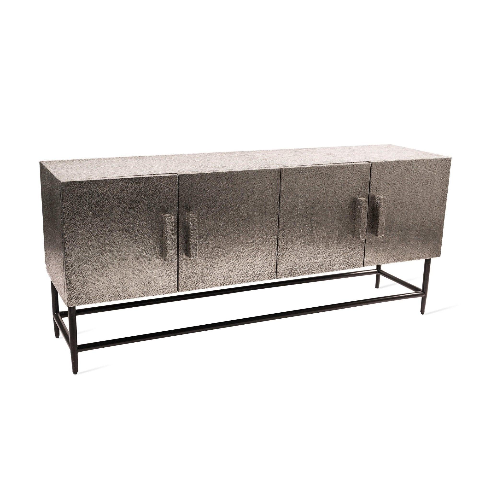 Silberne Kommode Pits wurde unter Verwendung einer modernen Methode zum Zusammenhang mit Silberverkleidung und schwarzem pulvergelackten Beinen erstellt. Dieses Modell kann ein elegantes und anspruchsvolles Element Ihres Zuhauses oder Bürodekors sein - es passt zu den Innenräumen im industriellen, modernen und Loft -Stil. Wenn Sie nach einem mutigen Stil suchen, ist dies ein Möbelstück für Sie.