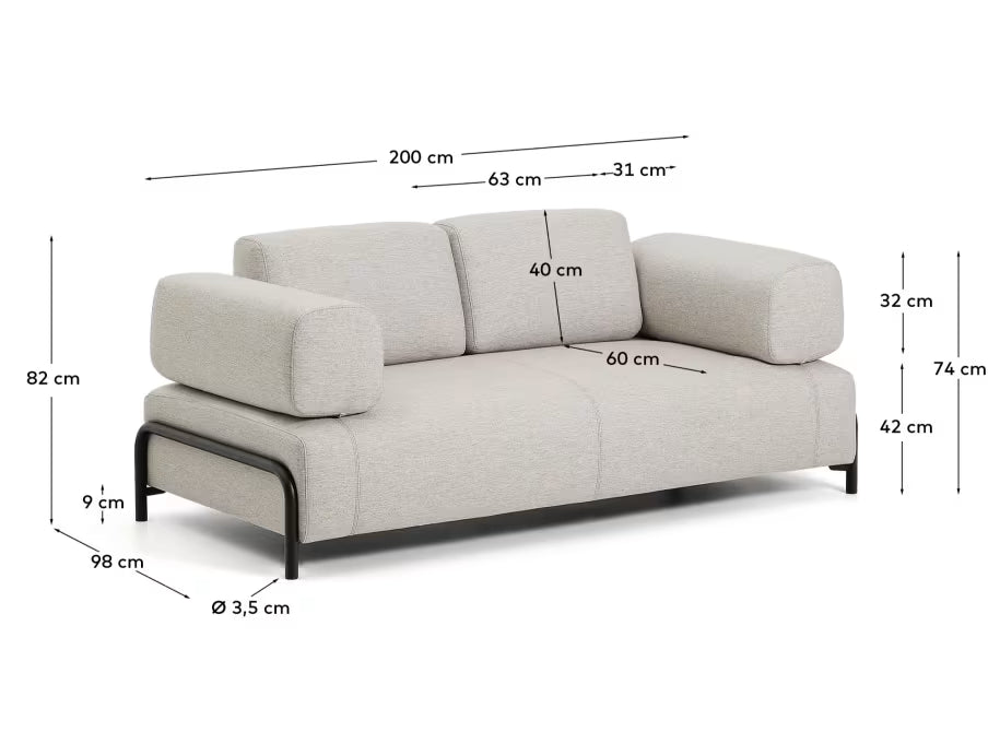 Sofa 2-sitzig mit Armlehnen COMPO grau-beige mit schwarzem Gestell