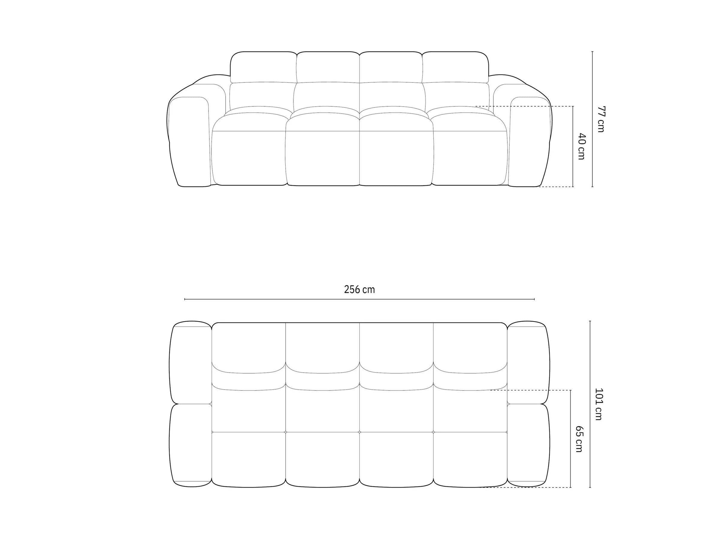 4-sitziges Sofa Lisa ist eine Kombination aus modernem Stil, Eleganz und höchstem Komfort. Ihre ausdrucksstarke Form zieht die Blicke auf sich, aber der wahre Eindruck entsteht erst, wenn Sie darauf Platz nehmen. Die tiefen Sitzflächen und weichen Rückenlehnen garantieren außergewöhnliche Entspannung, während die solide Konstruktion und die hochwertigen Füllungen Langlebigkeit und Komfort über viele Jahre hinweg gewährleisten. Sofa Lisa eignet sich perfekt für jedes Interieur – vom modernen Wohnzimmer bis hin zum gemütlichen Aufenthaltsraum.