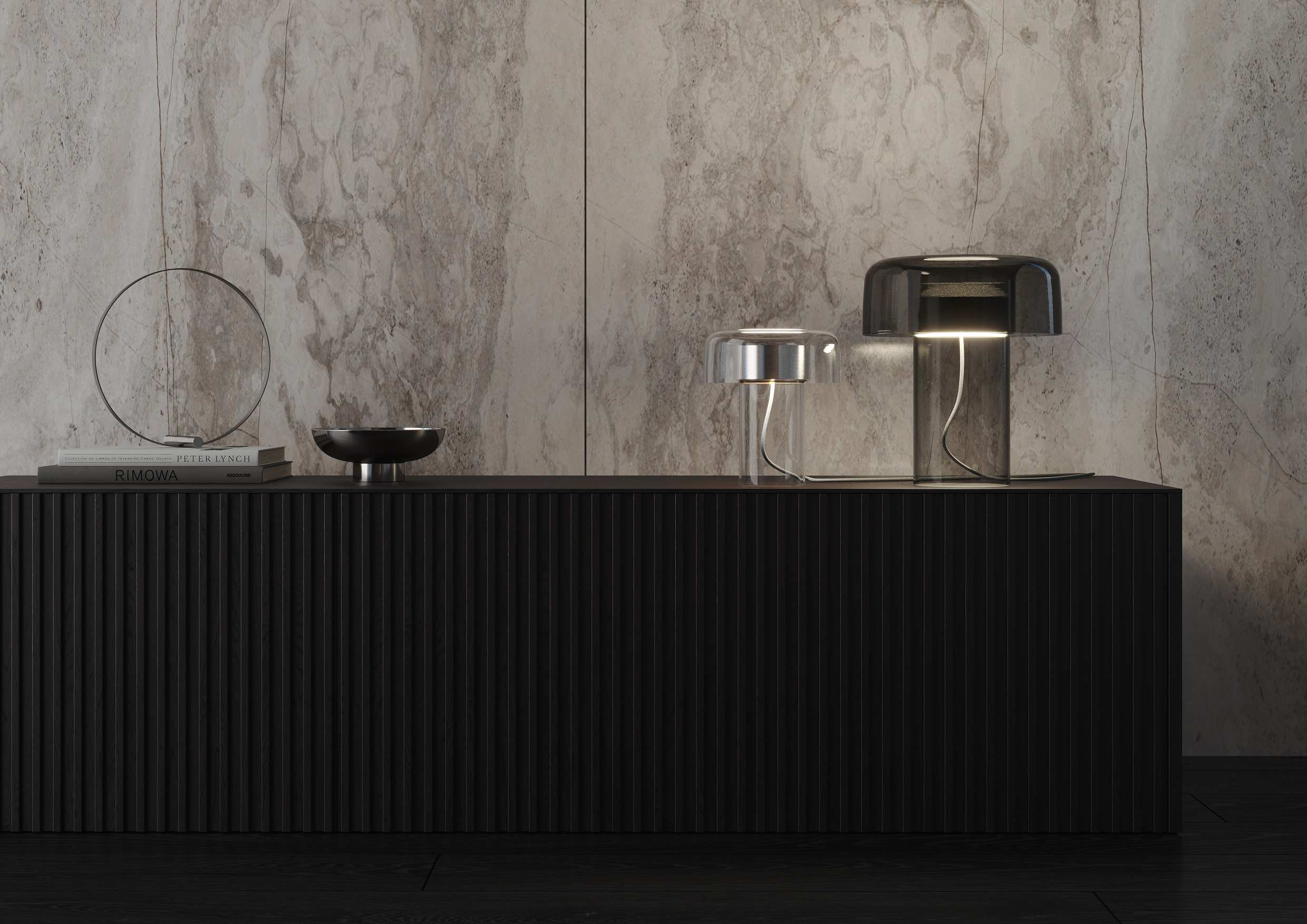 Tischlampe Spectra mit einer klassischen Silhouette einer Tischlampe kombiniert die Einfachheit der Form mit Funktionalität. Sein Aluminiumleuchten hat ein Loch mit einer doppelten Lichtquelle, die ein zartes Licht sowohl auf einem Glasbasis nach oben als auch unten abgibt, wodurch intime atmosphärische Effekte erzeugt werden. Spectra ist in transparenten, braunen, Rauch- oder Opalglas erhältlich und bietet zwei Größen und ermöglicht es Ihnen, die Lichtintensität mit einem integrierten Dimmer anzupassen.