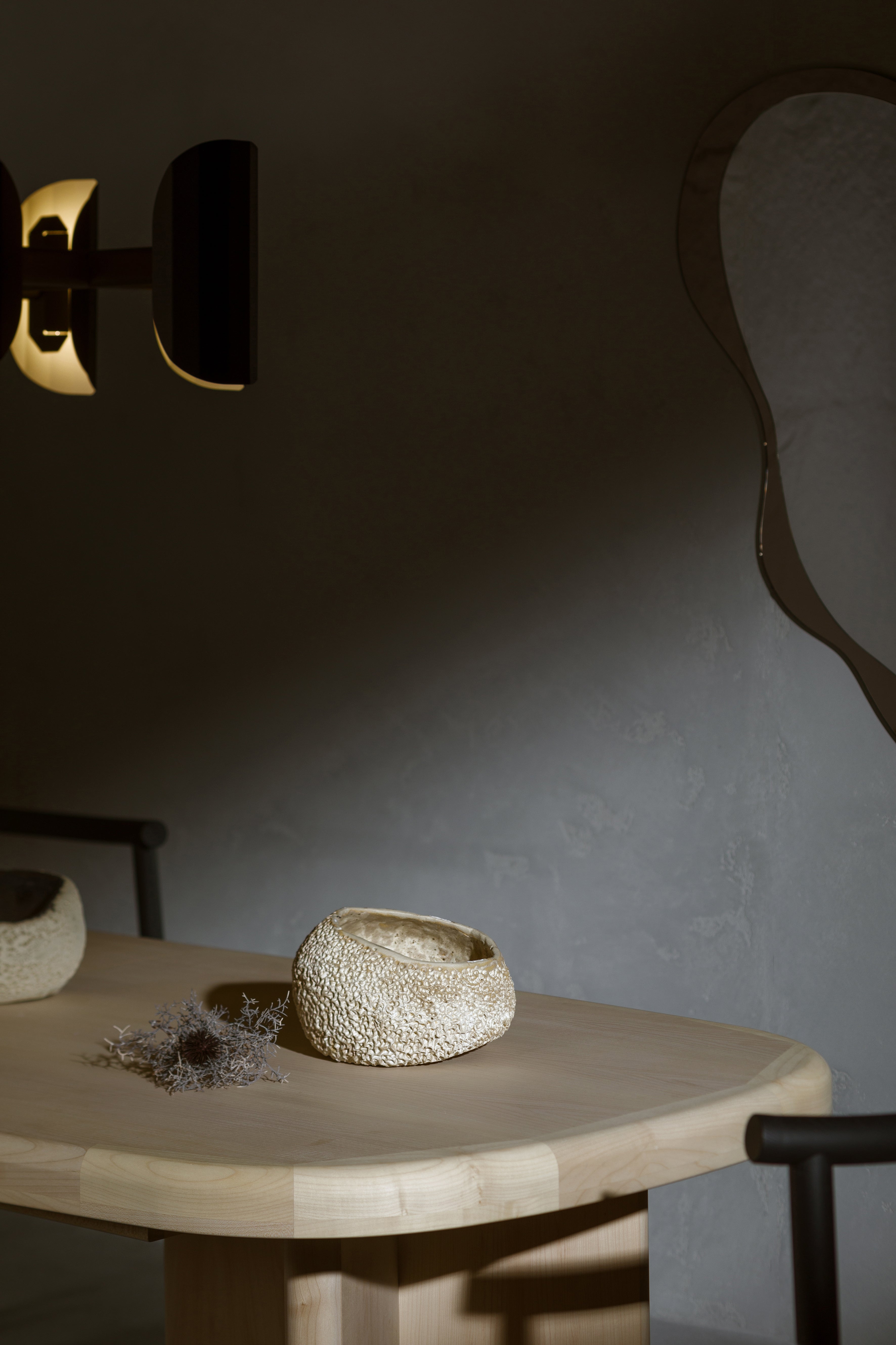 Eichenholz Tisch Okal von Swallow’s Tail ist eine Verbindung von zeitlosem Design und Funktionalität, inspiriert von Tradition in modernem Gewand. Seine elegante Form mit charakteristischen Rundungen erinnert an den Gdynia-Modernismus der 30er Jahre des 20. Jahrhunderts. Dieser elegante Tisch zieht nicht nur die Blicke auf sich, sondern ergänzt auch harmonisch Innenräume, die geschmackvoll eingerichtet sind, und verleiht ihnen Klasse und Raffinesse.