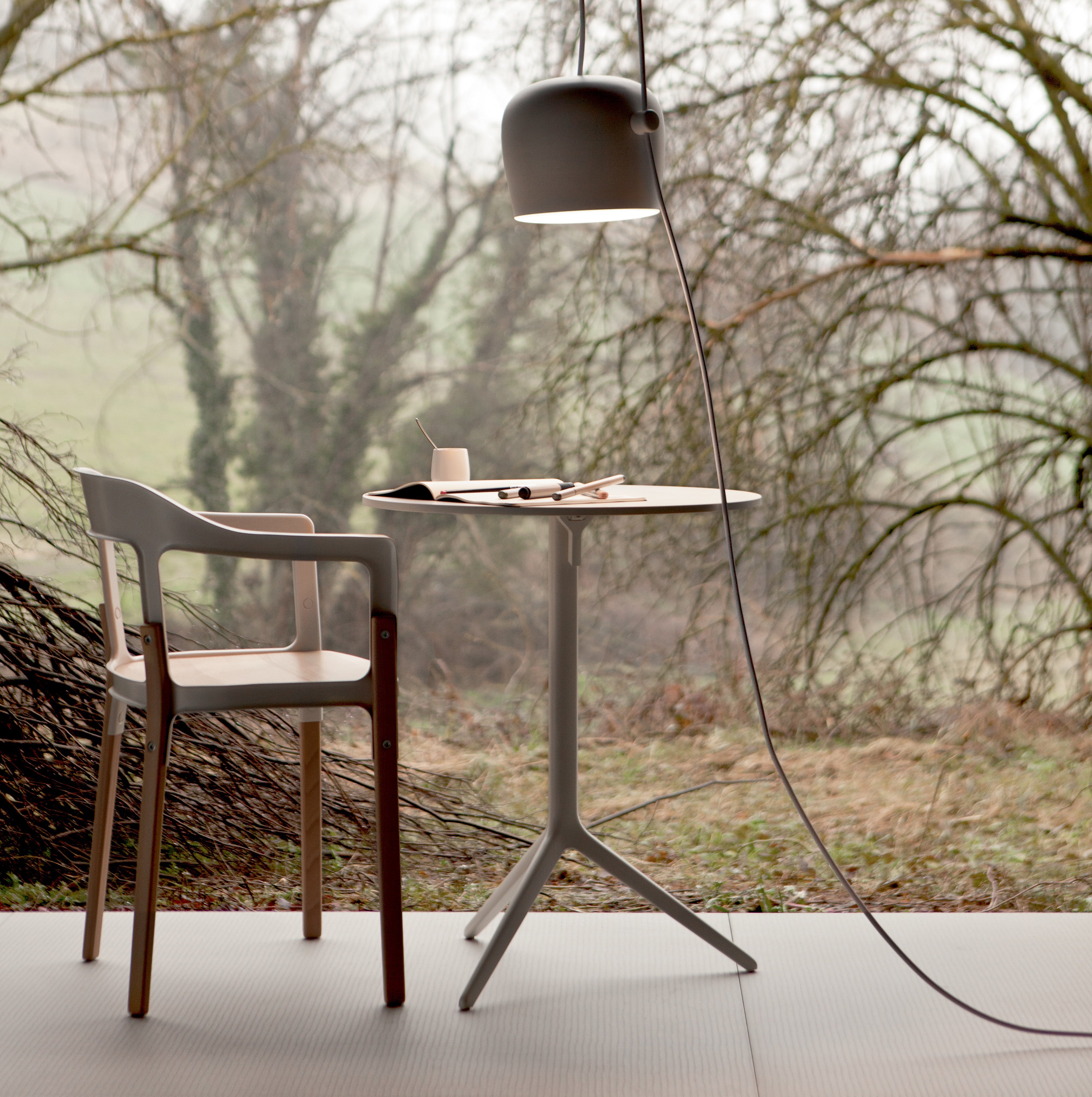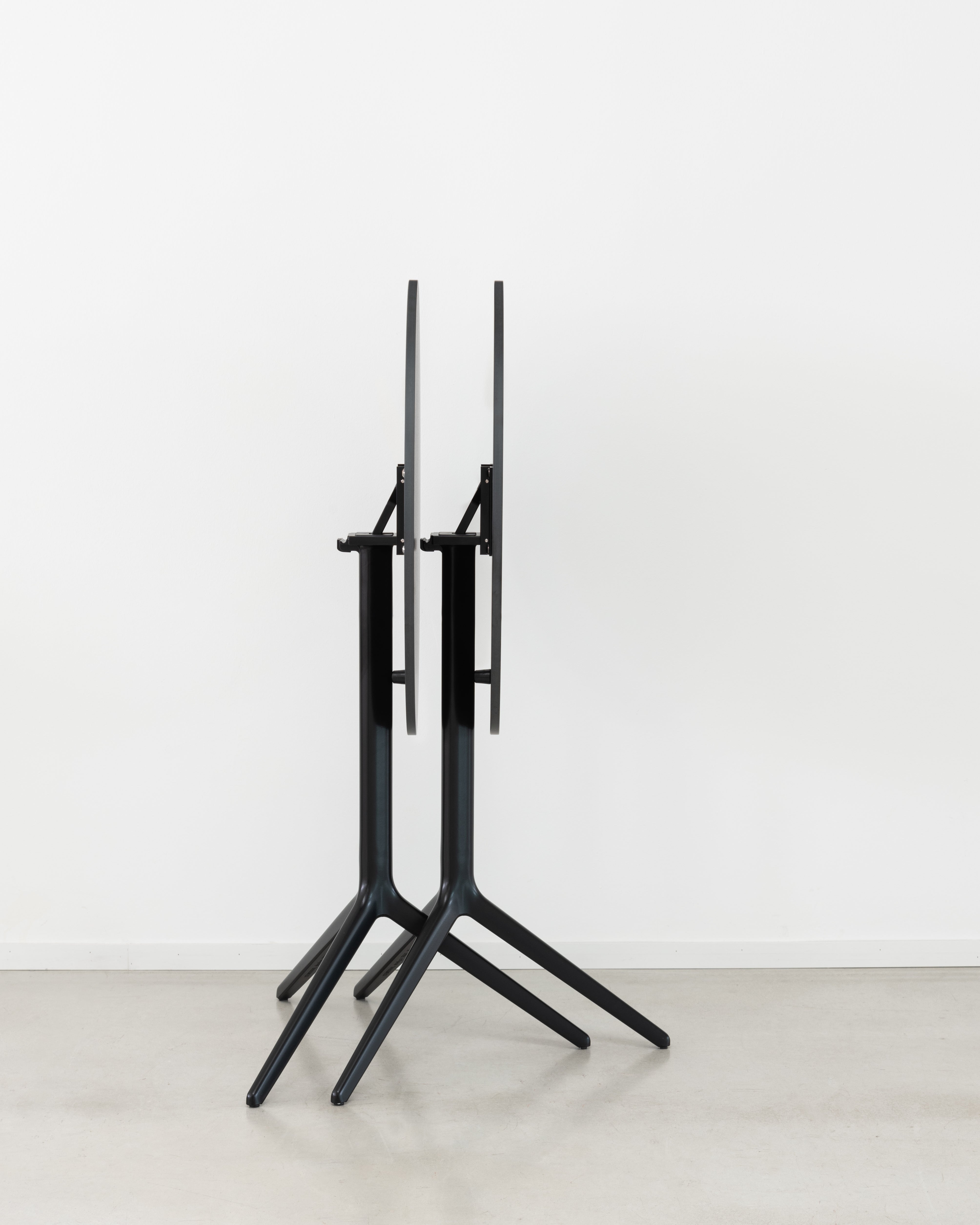 Der schlanke Aluminiumgussfuß und die runde Tischplatte bilden eine stimmige Einheit, deren wichtigstes Merkmal die Klappfunktion ist. Dank ihr eignet sich der Central Tisch hervorragend für kleinere Räume, Cafés oder Multifunktionsbereiche, in denen einfache Aufbewahrung und Mobilität wichtig sind – ohne Kompromisse bei der Ästhetik einzugehen.