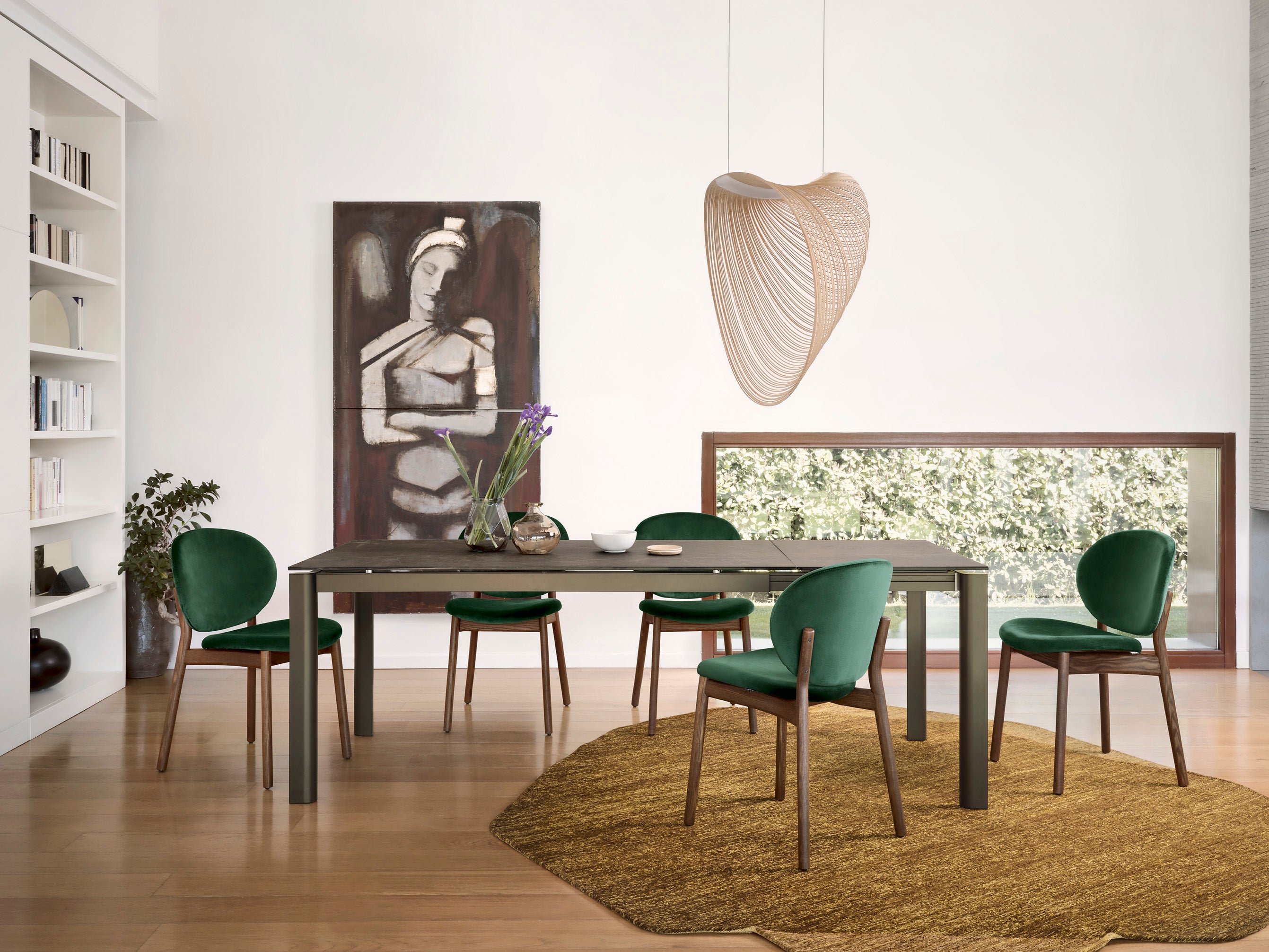 Ausziehbarer Tisch Stream zeichnet sich vor allem durch die untypische Form der Beine aus, die sein Markenzeichen darstellt. Diese wurden im Prozess des Materialabtrags und Schleifens geformt, wodurch auf die klassischen, kantigen Querschnitte, die man bei den meisten Tischen findet, verzichtet wurde. Der große Abstand zwischen den inneren Ecken der Beine betont deutlich den Nutzungskomfort, sorgt für Bewegungsfreiheit und viel Platz für die Beine, während er gleichzeitig der Form Leichtigkeit und eine dynamische Silhouette verleiht.