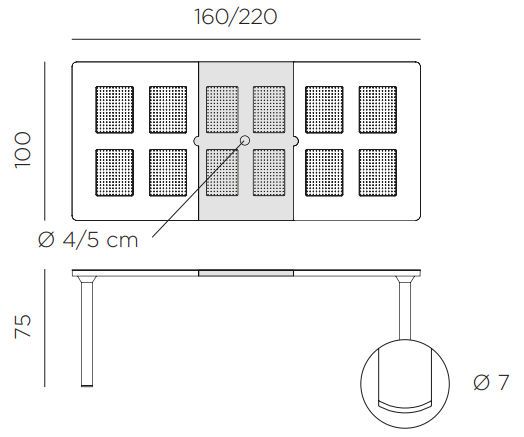 Der Tisch Libeccio ist ein ausziehbares Modell, das eine einfache Anpassung der Arbeitsfläche an die Anzahl der Gäste ermöglicht und Flexibilität bei der Raumgestaltung bietet. Dank des einfachen Montage- und Demontagesystems ist er zudem leicht zu lagern und zu transportieren. Seine subtile Form und elegante Ausstrahlung machen den Tisch Libeccio zum zentralen Punkt jeder Outdoor-Gestaltung und sorgen für Komfort und stilvolle Akzente im Raum.